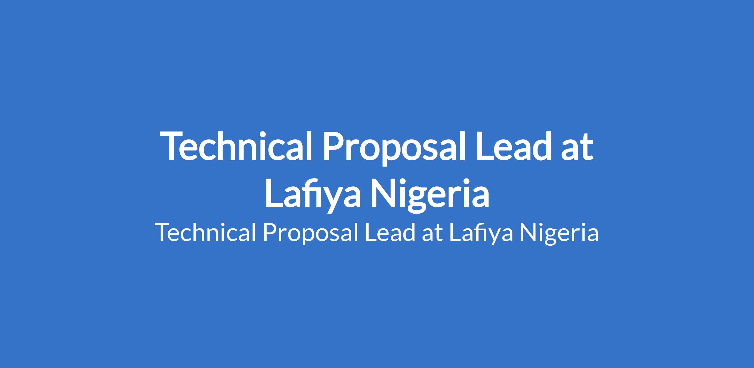 Lafiya Nigeria is recruiting to fill the position of: Technical Proposal Lead. The position is located in Abuja (FCT). Interested candidates should possess a Bachelors Degree with a minimum of 5 years professional writing experience focused on institutional and government grant fundraising, or similar (policy writing, RFPs, technical writing, etc).