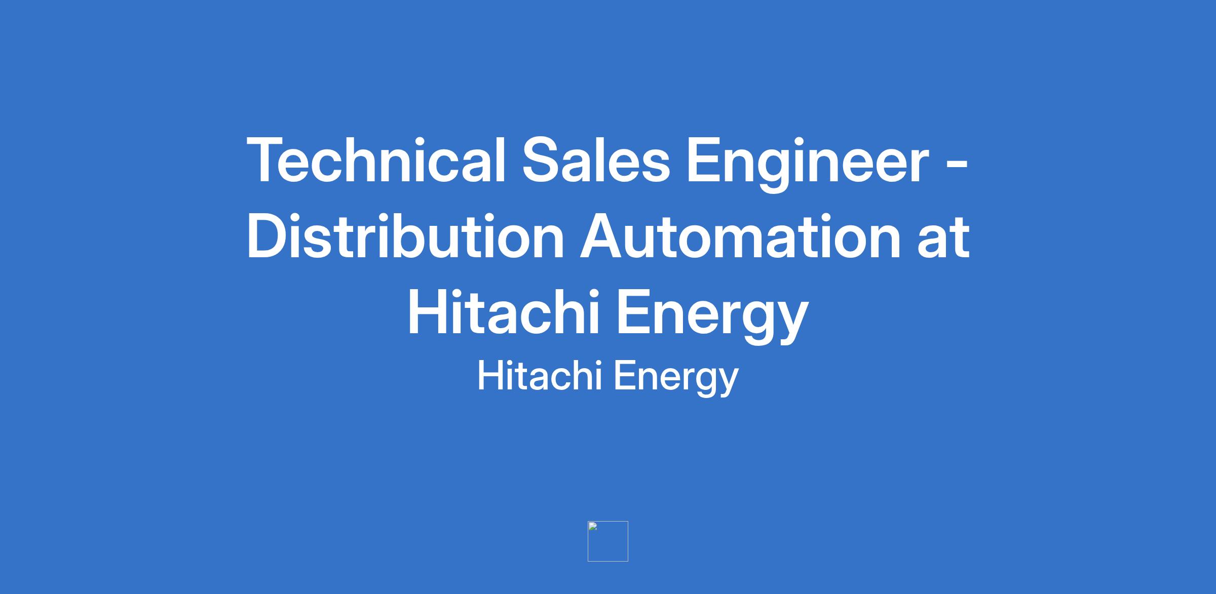 Technical Sales Engineer - Distribution Automation at Hitachi Energy