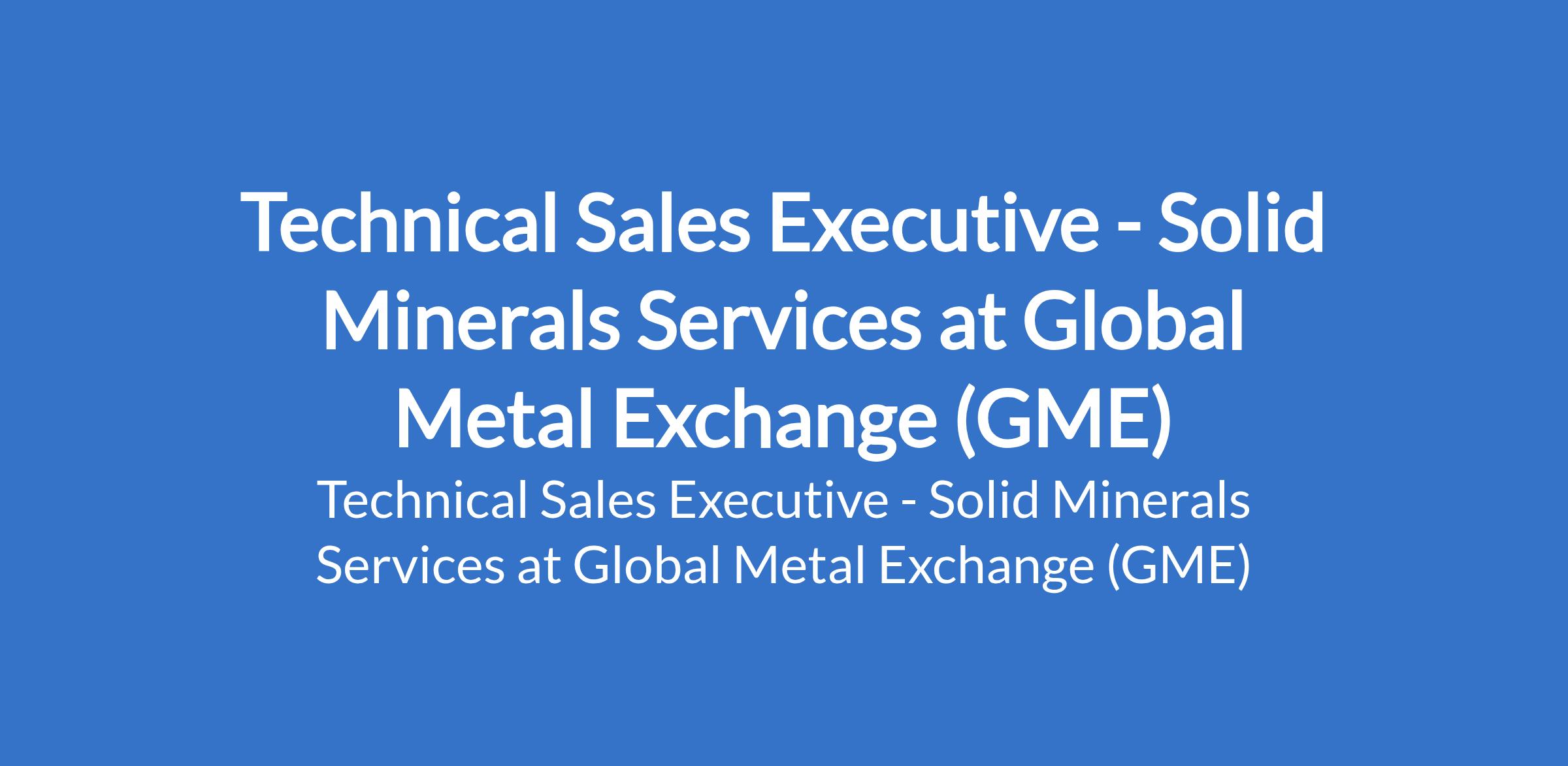 Global Metal Exchange (GME), a subordinate company under CCBC Testing Laboratory, is recruiting to fill the position of: Technical Sales Executive - Solid Minerals Services. The position is located in Ikeja, Lagos State. Interested candidates should possess a Bachelors degree in Geology, Mineralogy, Mining Engineering, or a related discipline.