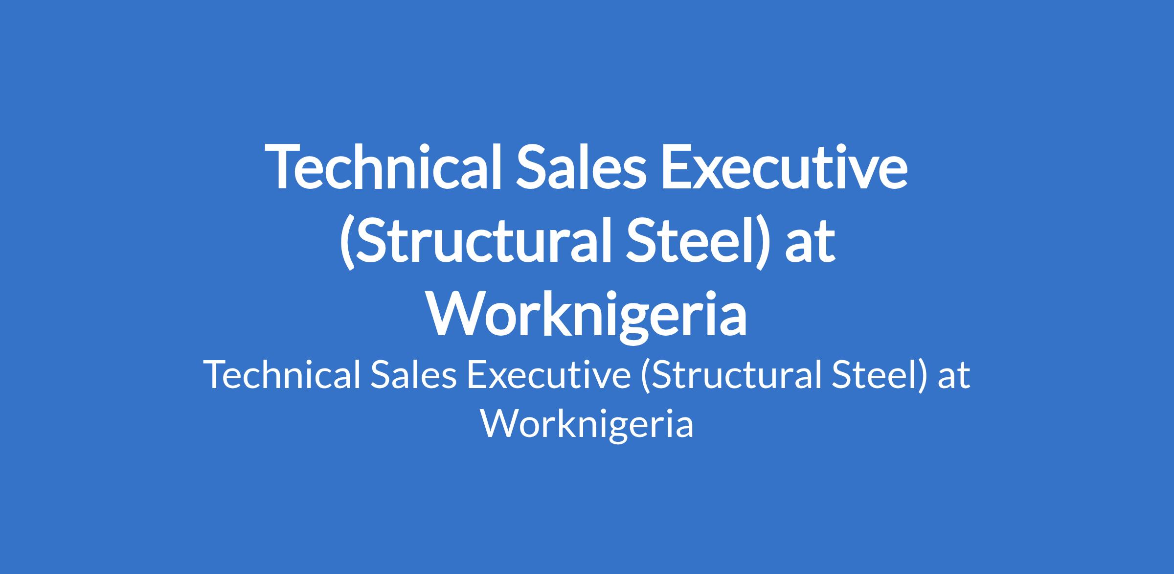 Worknigeria is recruiting to fill the position of: Technical Sales Executive (Structural Steel). The position is located in Lekki, Lagos State. Interested candidates should possess a Bachelor's Degree in Engineering (core subject such as Mechanical, Civil, Electrical, IP, etc) with 3 4 years of relevant work experience.