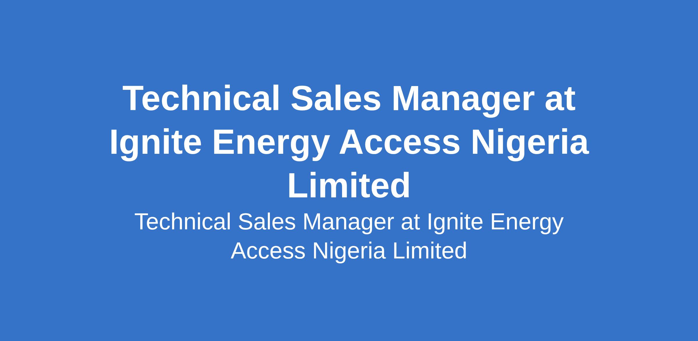 Ignite Energy Access Nigeria Limited is recruiting to fill the position of: Technical Sales Manager. The position is located in Kaduna State. Interested candidates should possess a Bachelors Degree in Engineering, Renewable Energy, Business, Sales, or a related field with a minimum of 3 years experience in technical sales, business development, and sales preferably in the solar or energy sector.