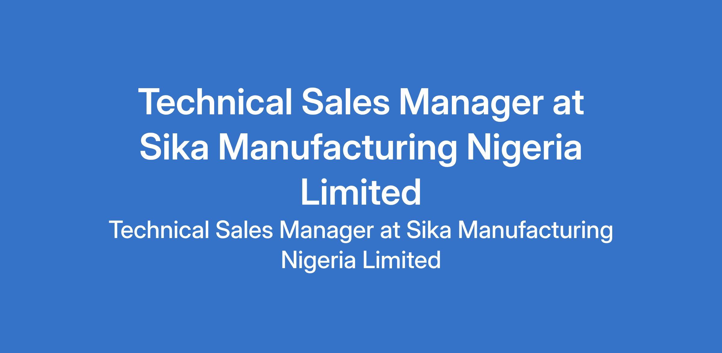 Sika Manufacturing Nigeria Limited is recruiting to fill the position of: Technical Sales Manager. The position is located in Abuja (FCT). Interested candidates should possess an HND / B.Sc in Engineering / Environmental Sciences or related field with 5 years working experience in related field.