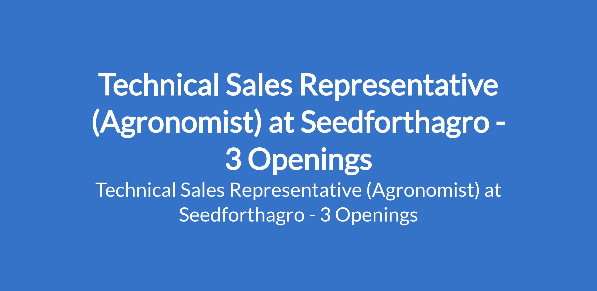 Seedforthagro is recruiting to fill the position of: Technical Sales Representative (Agronomist). The position is located in Abuja (FCT), Delta and Plateau States. Interested candidates should possess a Degree in Agriculture, Agronomy, or related field.