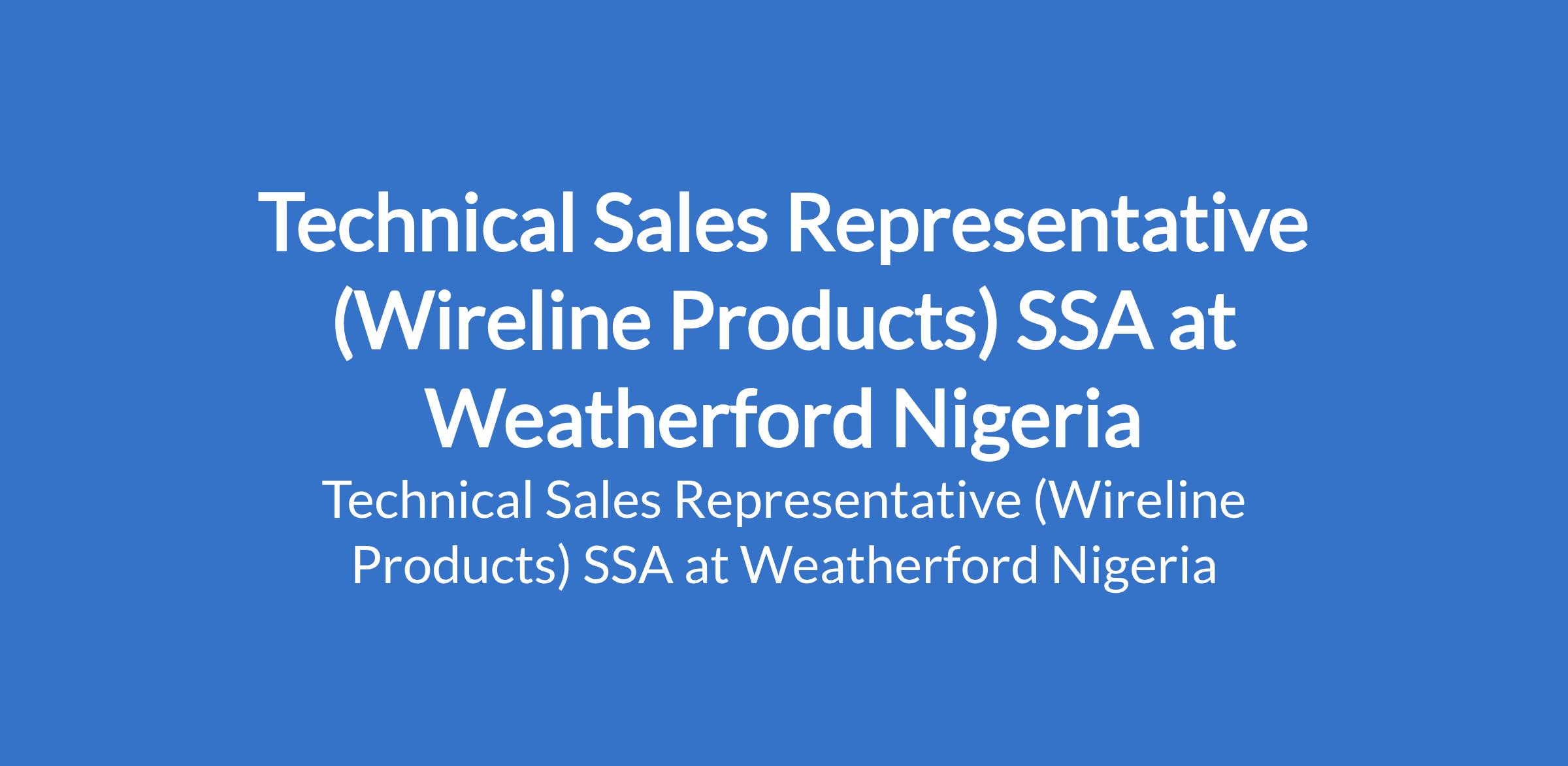 Weatherford Nigeria is recruiting to fill the position of: Technical Sales Representative (Wireline Products) SSA. The position is located in Victoria Island, Lagos. Interested candidates should possess a Bachelor's Degree in petroleum engineering, geosciences, or related technical field (if no degree, minimum 8 years industry experience) with a minimum 5 years of wireline / slickline technical experience in a combination of field and onshore technical support roles; minimum of 3 years in a product sales or services sales role on top of field experience.
