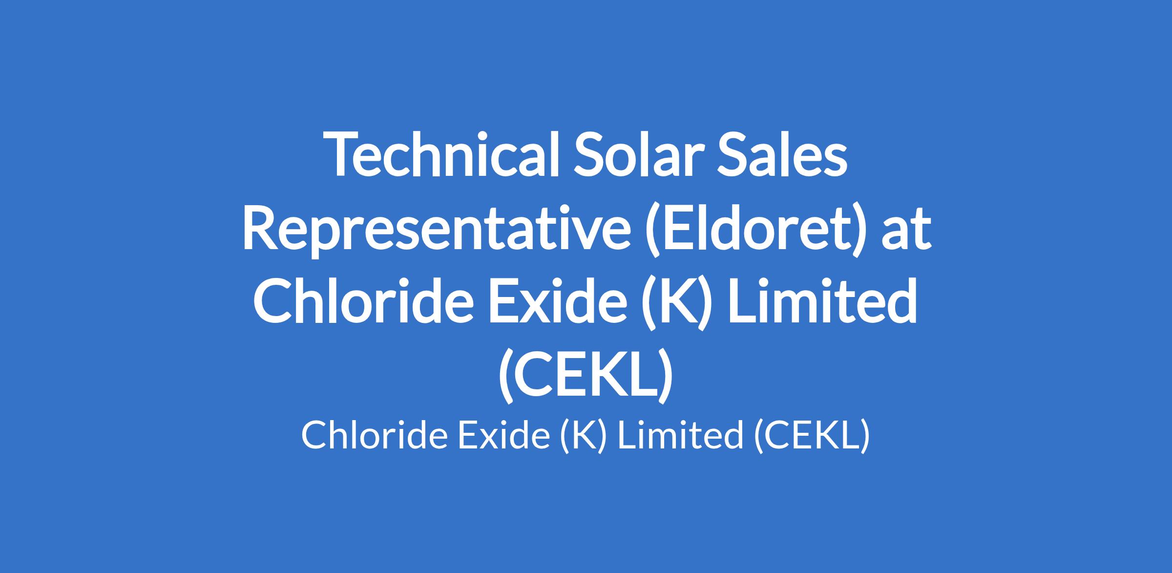 Technical Solar Sales Representative (Eldoret) at Chloride Exide (K) Limited (CEKL)