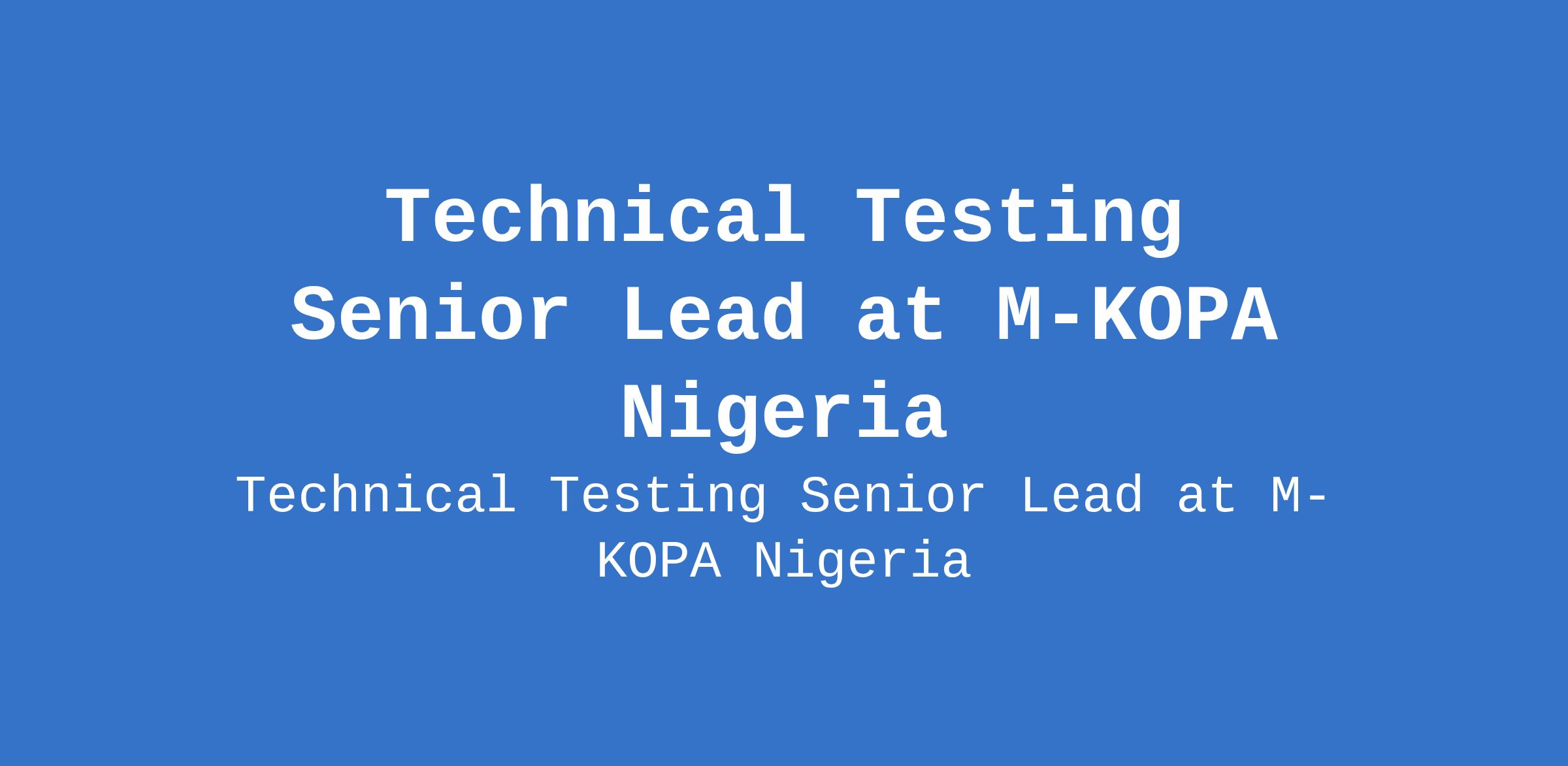 Technical Testing Senior Lead at M-KOPA Nigeria