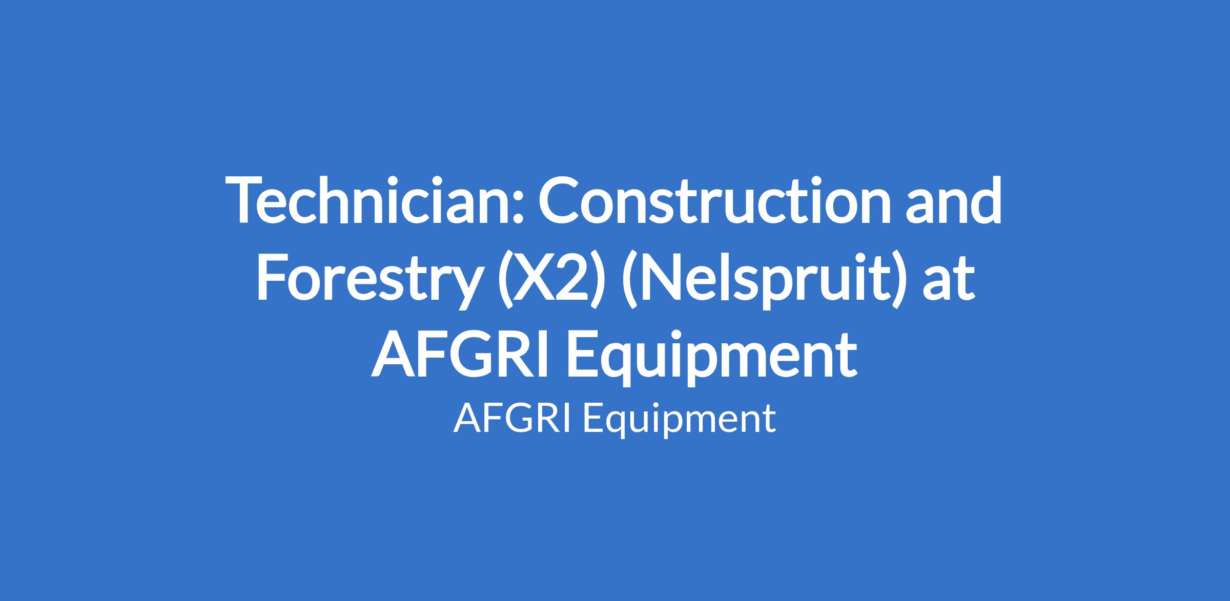Technician: Construction and Forestry (X2) (Nelspruit) at AFGRI Equipment