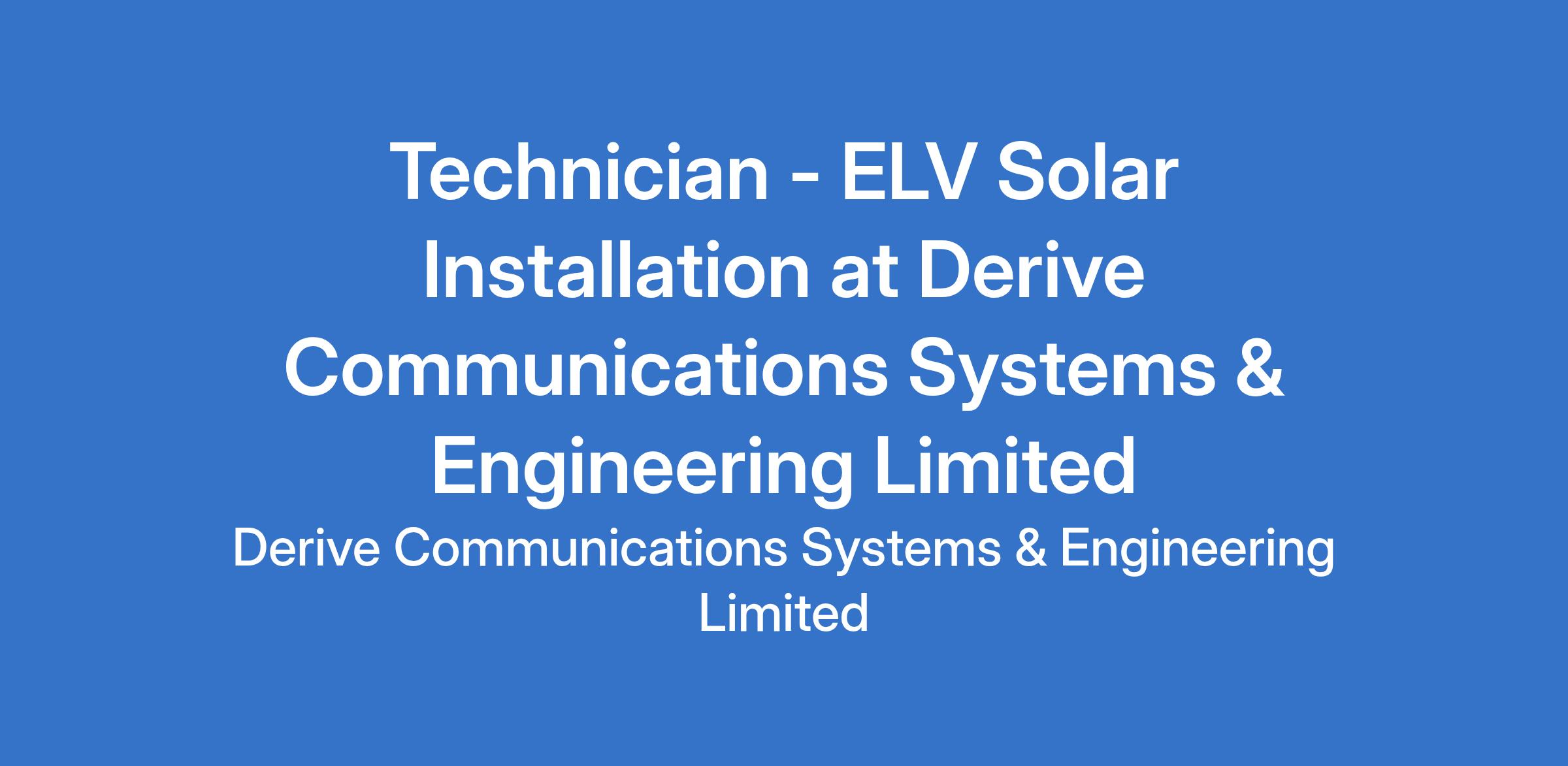 Install and maintain solar panels and ELV systems (CCTV, alarms, access control)