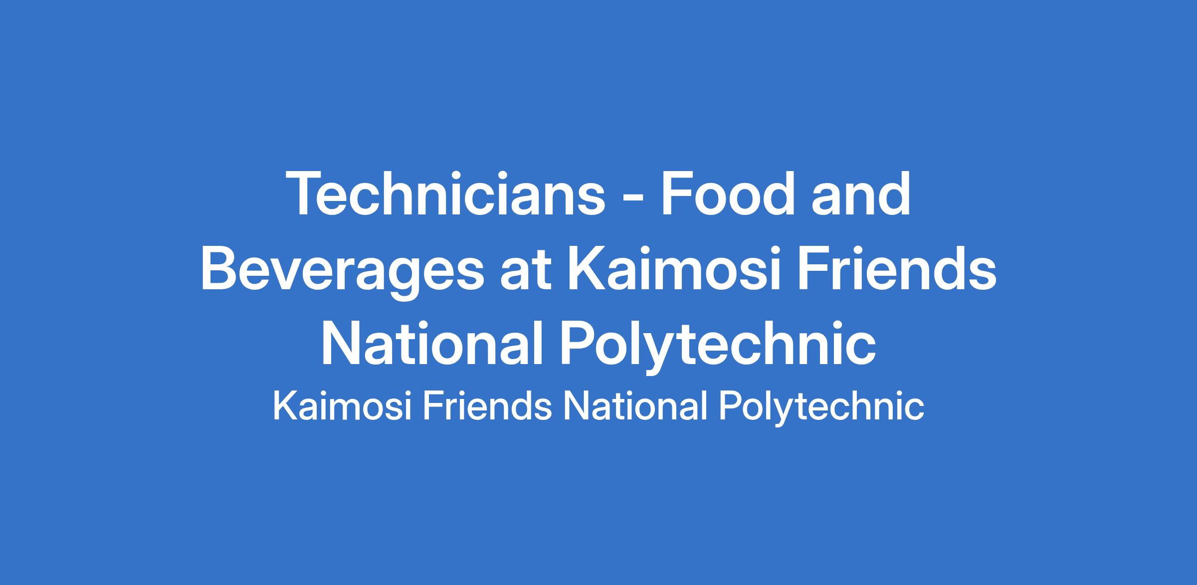 Technicians - Food and Beverages at Kaimosi Friends National Polytechnic