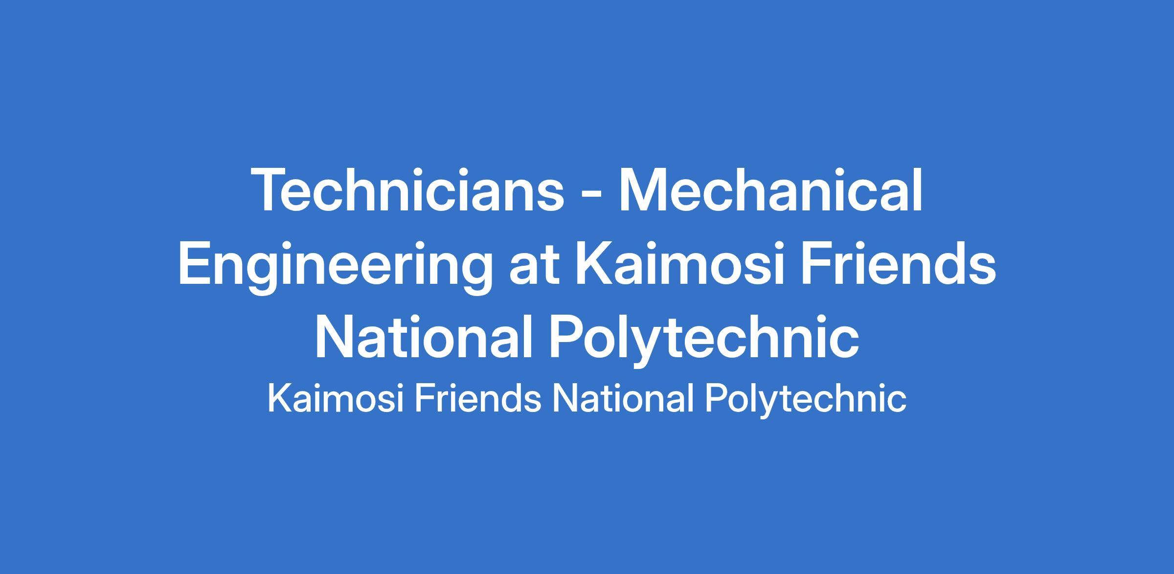 Technicians - Mechanical Engineering at Kaimosi Friends National Polytechnic