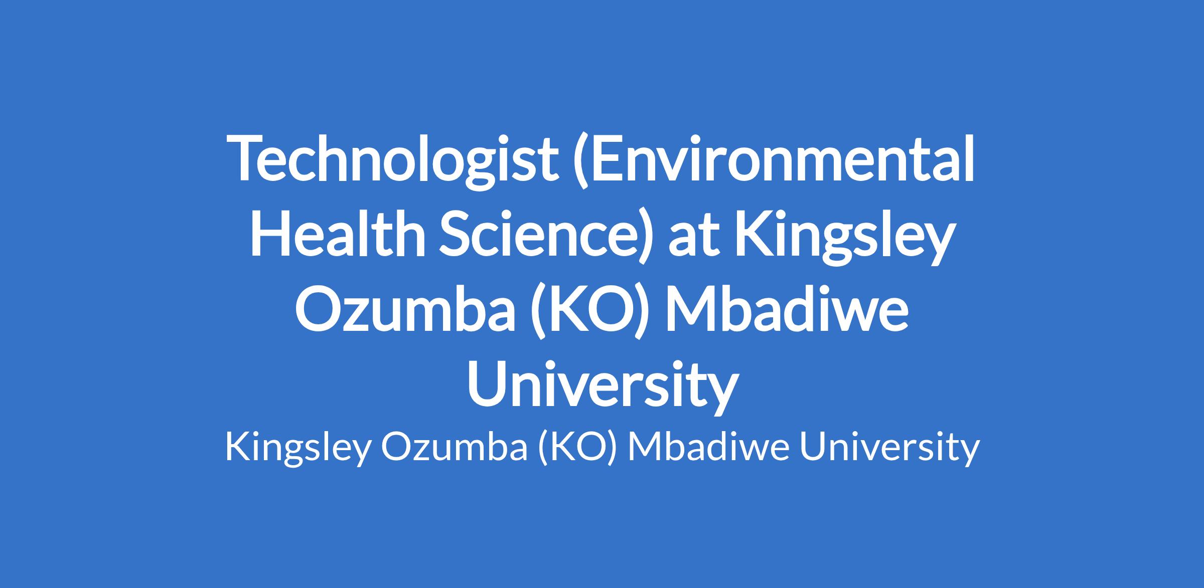 Technologist (Environmental Health Science) at Kingsley Ozumba (KO) Mbadiwe University