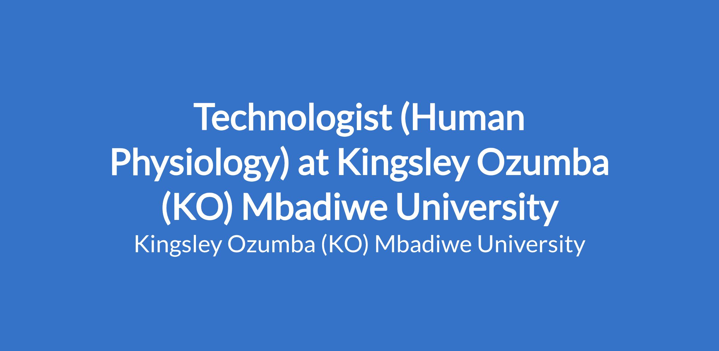 Technologist (Human Physiology) at Kingsley Ozumba (KO) Mbadiwe University