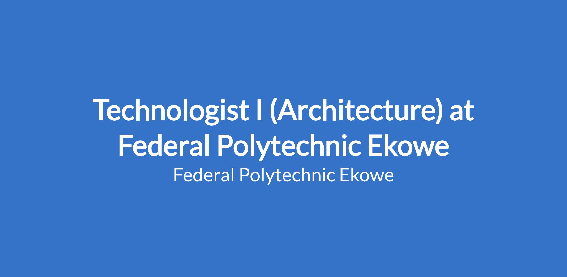 Technologist I (Architecture) at Federal Polytechnic Ekowe