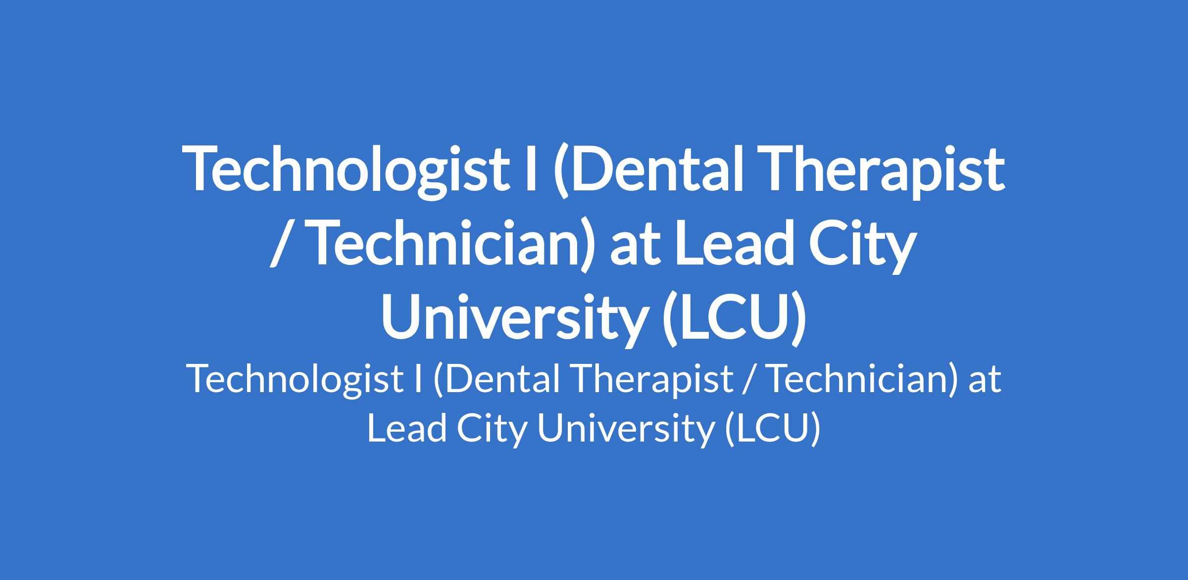 Lead City University (LCU) invites applications from suitable candidates to fill the position of: Technologist I (Dental Therapist / Technician). The position is located in Ibadan, Oyo State. Interested candidates should possess a a good First Degree, not below second class lower division or Higher National Diploma (HND) from a reputable University / Institution, and must also possess a current practice licence from the relevant Council/Regulatory Board.