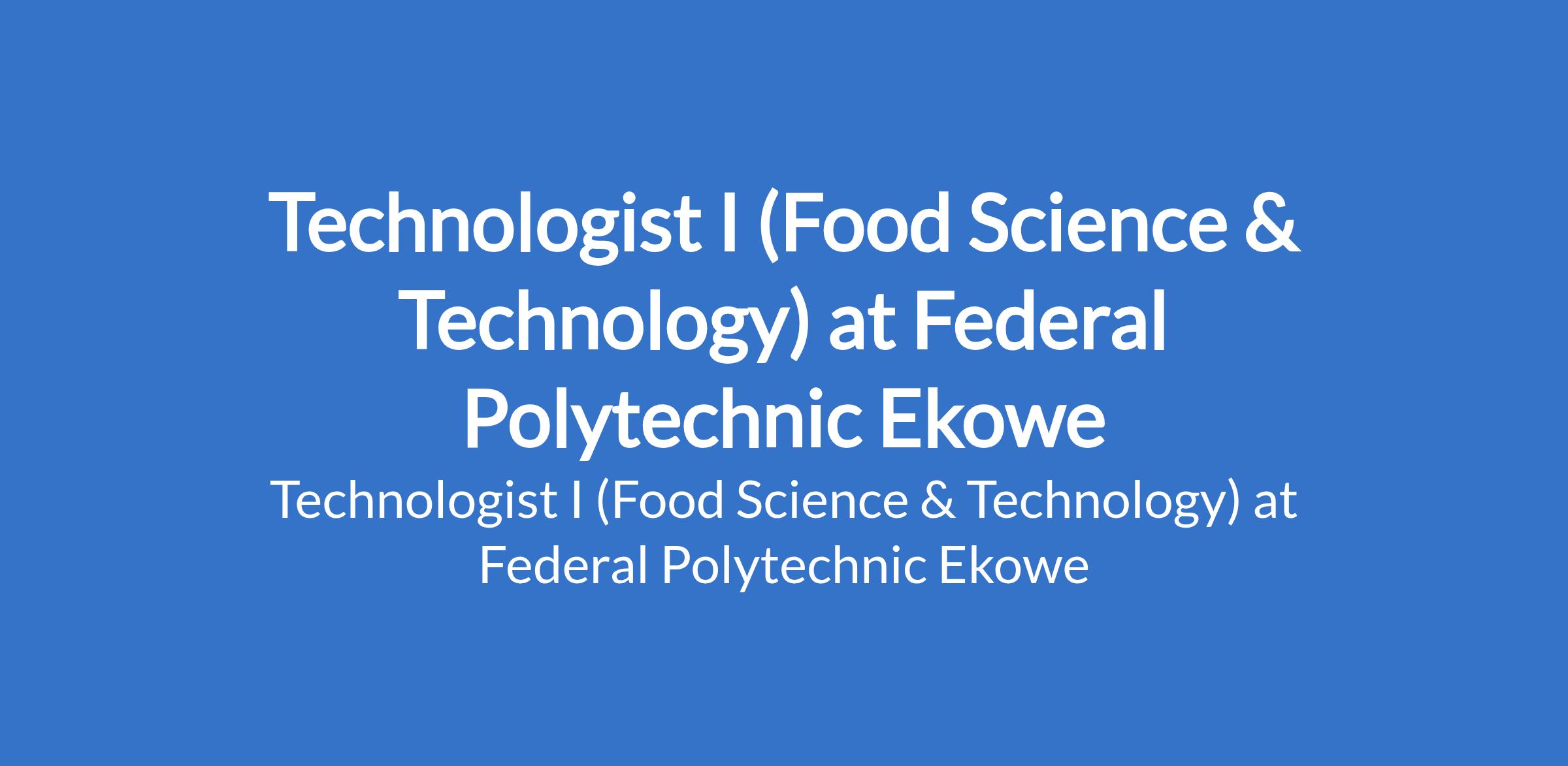 The Federal Polytechnic Ekowe invites applications from suitably qualified candidates for the position of: Technologist I (Food Science & Technology). The position is located in Bayelsa State. Interested candidates should possess an HND at Credit Lavel in the relevant field from a recognized institution with at least three (3) years post-qualification cognate experience.