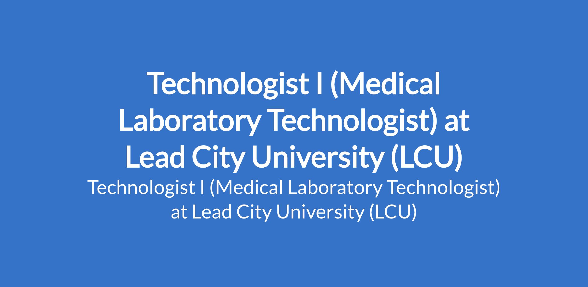 Lead City University (LCU) invites applications from suitable candidates to fill the position of: Technologist I (Medical Laboratory Technologist). The position is located in Ibadan, Oyo State. Interested candidates should possess a good First Degree, not below second class lower division or Higher National Diploma (HND) from a reputable University / Institution, and must also possess a current practice licence from the relevant Council/Regulatory Board.