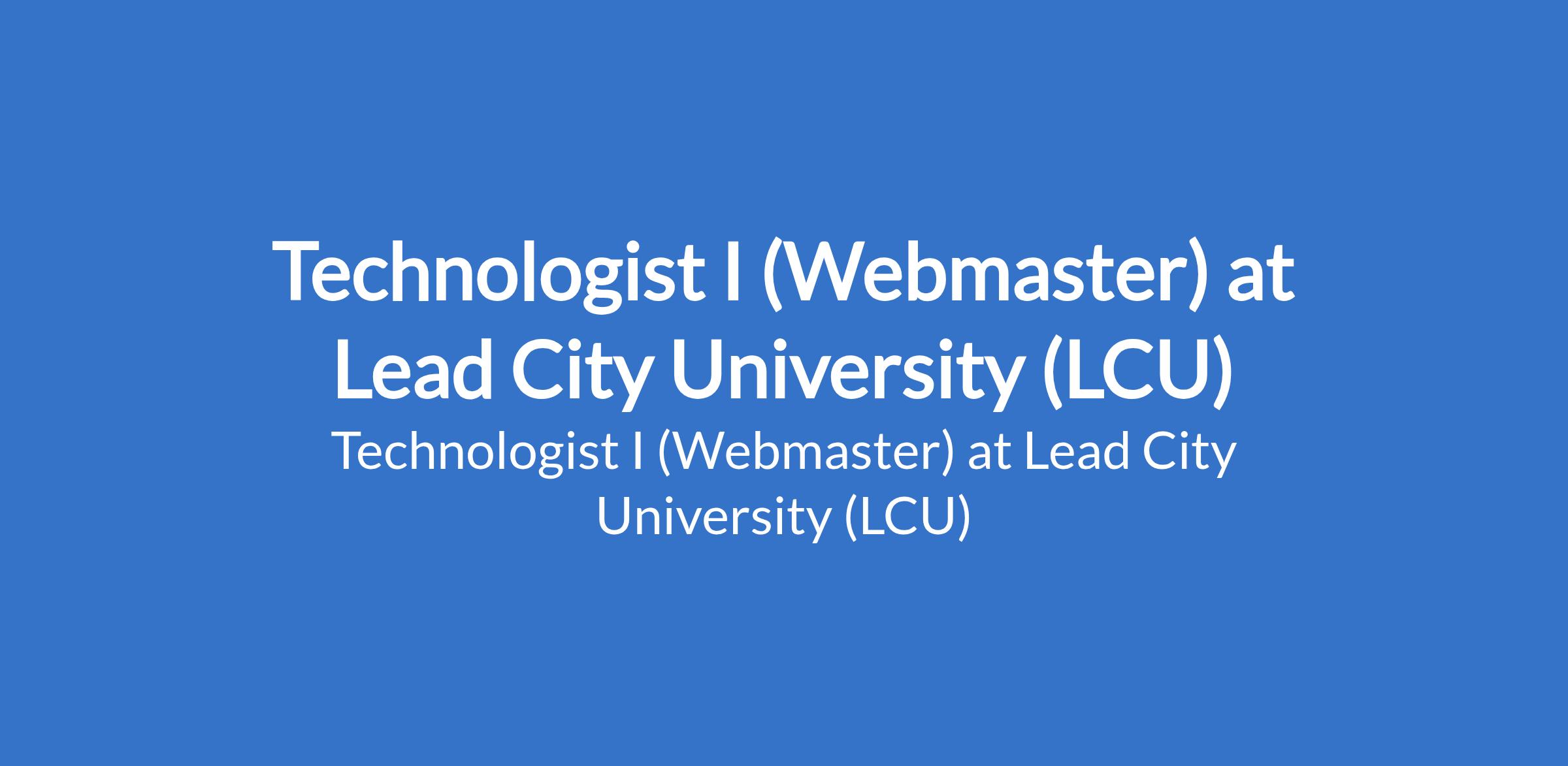 Lead City University (LCU) invites applications from suitable candidates to fill the position of: Technologist I (Webmaster). The position is located in Ibadan, Oyo State. Interested candidates should possess a good First Degree, not below Second Class Lower Division or Higher National Diploma (HND) from a reputable University/Institution..
