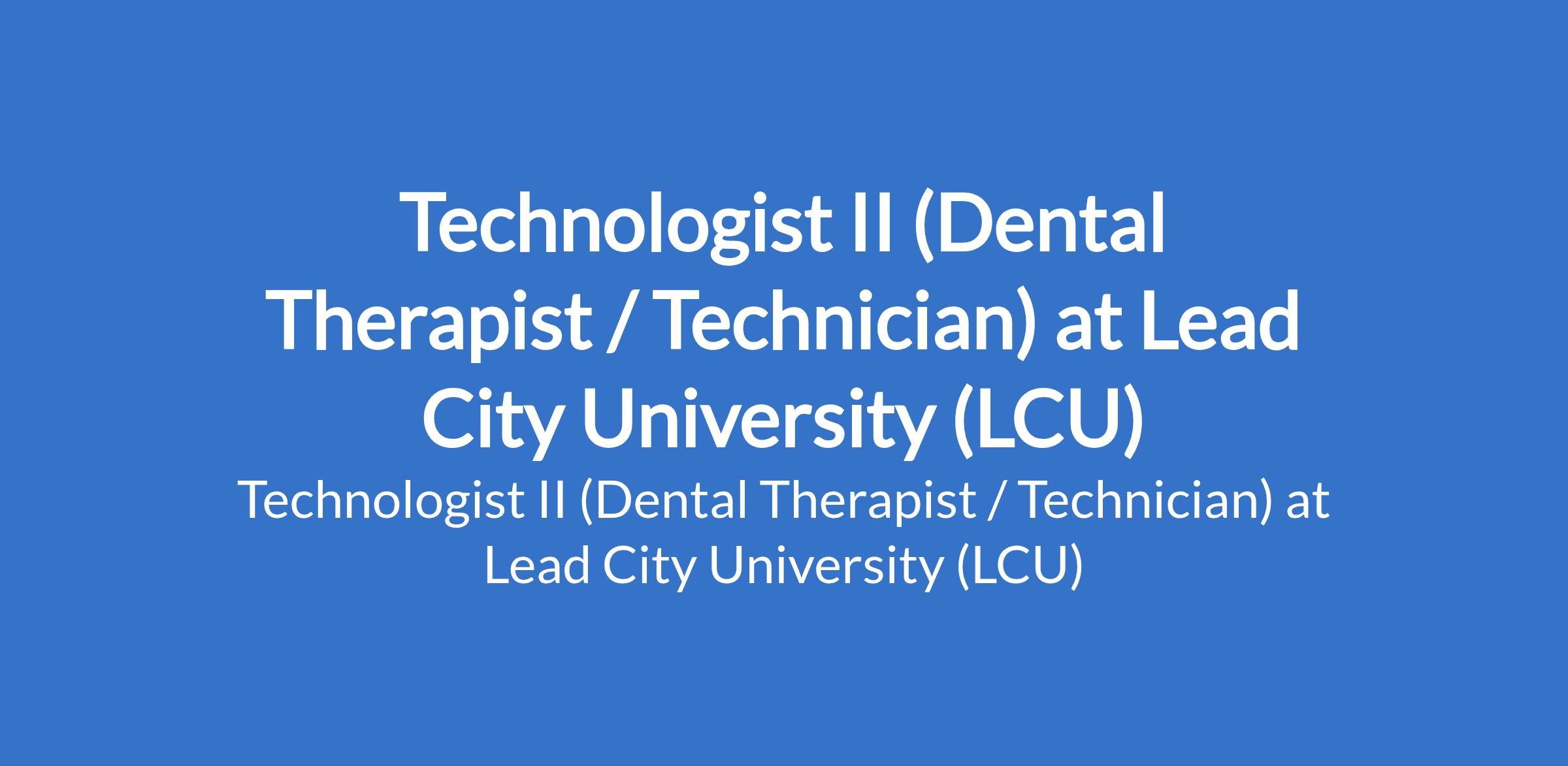 Lead City University (LCU) invites applications from suitable candidates to fill the position of: Technologist II (Dental Therapist / Technician). The position is located in Ibadan, Oyo State. Interested candidates should possess a good First Degree, not below second class lower division or Higher National Diploma (HND) from a reputable University / Institution, and must also possess a current practice licence from the relevant Council / Regulatory Board.