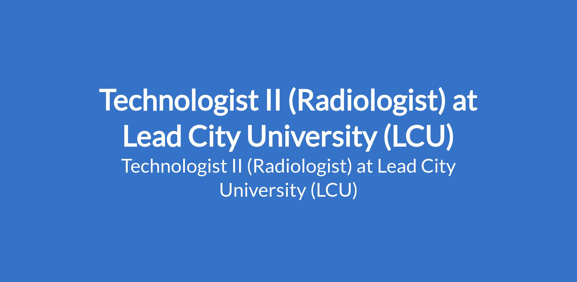 Lead City University (LCU) invites applications from suitable candidates to fill the position of: Technologist II (Radiologist). The position is located in Ibadan, Oyo State. Interested candidates should possess a good First Degree, not below second class lower division or Higher National Diploma (HND) from a reputable University / Institution, and must also possess a current practice licence from the relevant Council / Regulatory Board.
