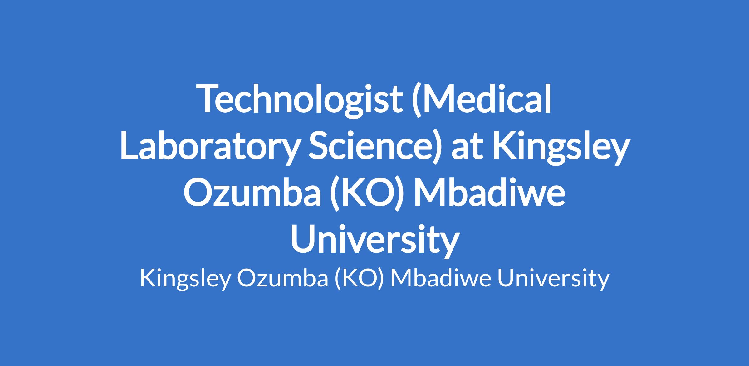 Technologist (Medical Laboratory Science) at Kingsley Ozumba (KO) Mbadiwe University
