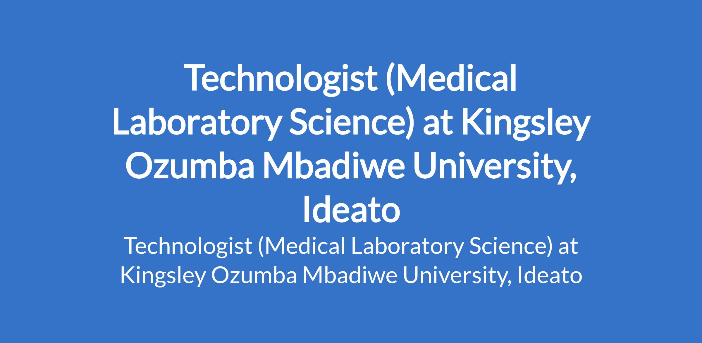 Technologist (Medical Laboratory Science) at Kingsley Ozumba Mbadiwe University, Ideato