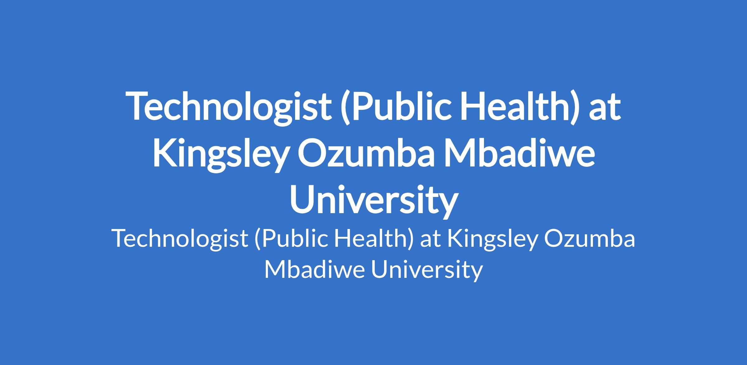 Technologist (Public Health) at Kingsley Ozumba Mbadiwe University