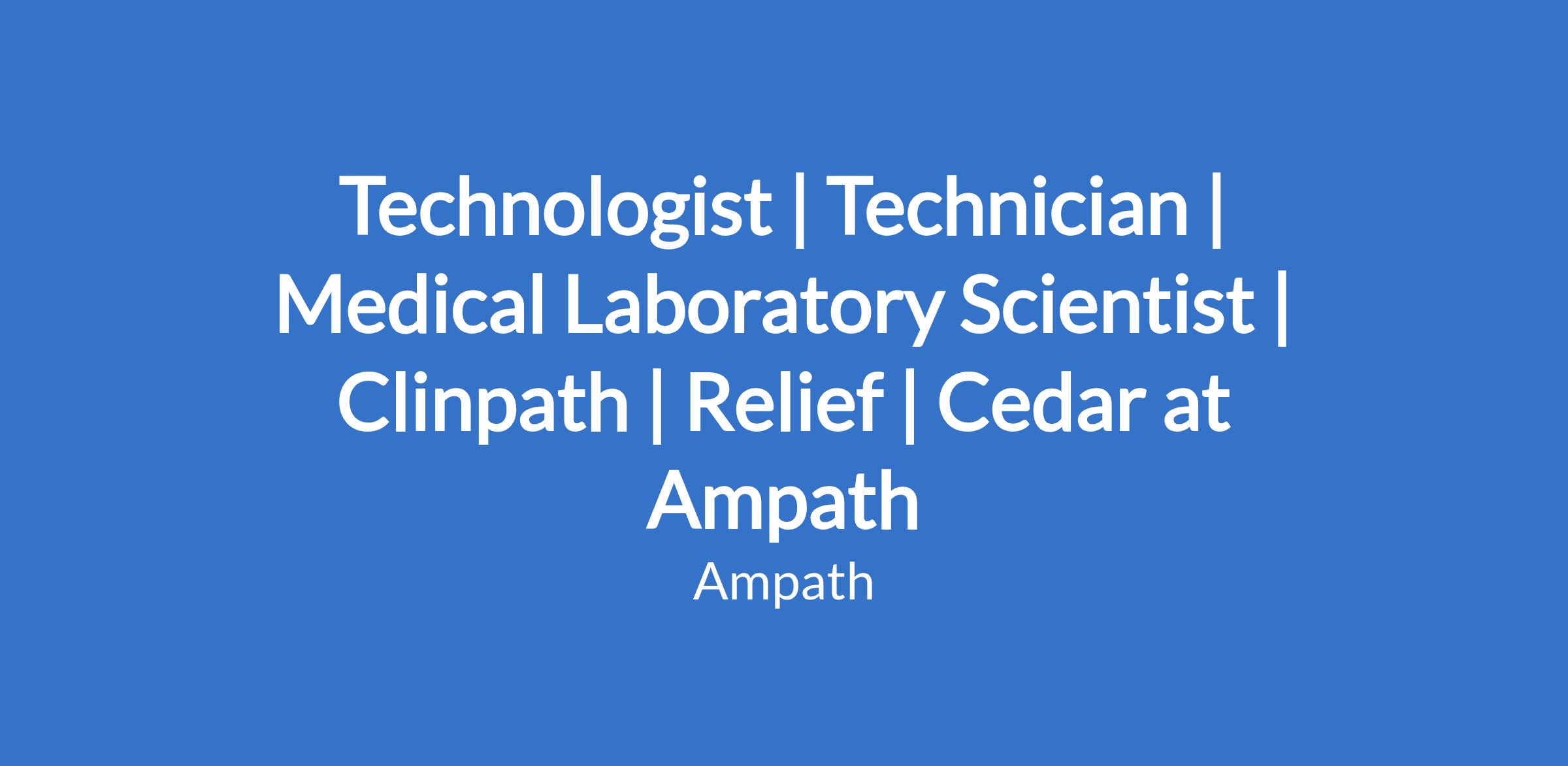 Technologist | Technician | Medical Laboratory Scientist | Clinpath | Relief | Cedar at Ampath