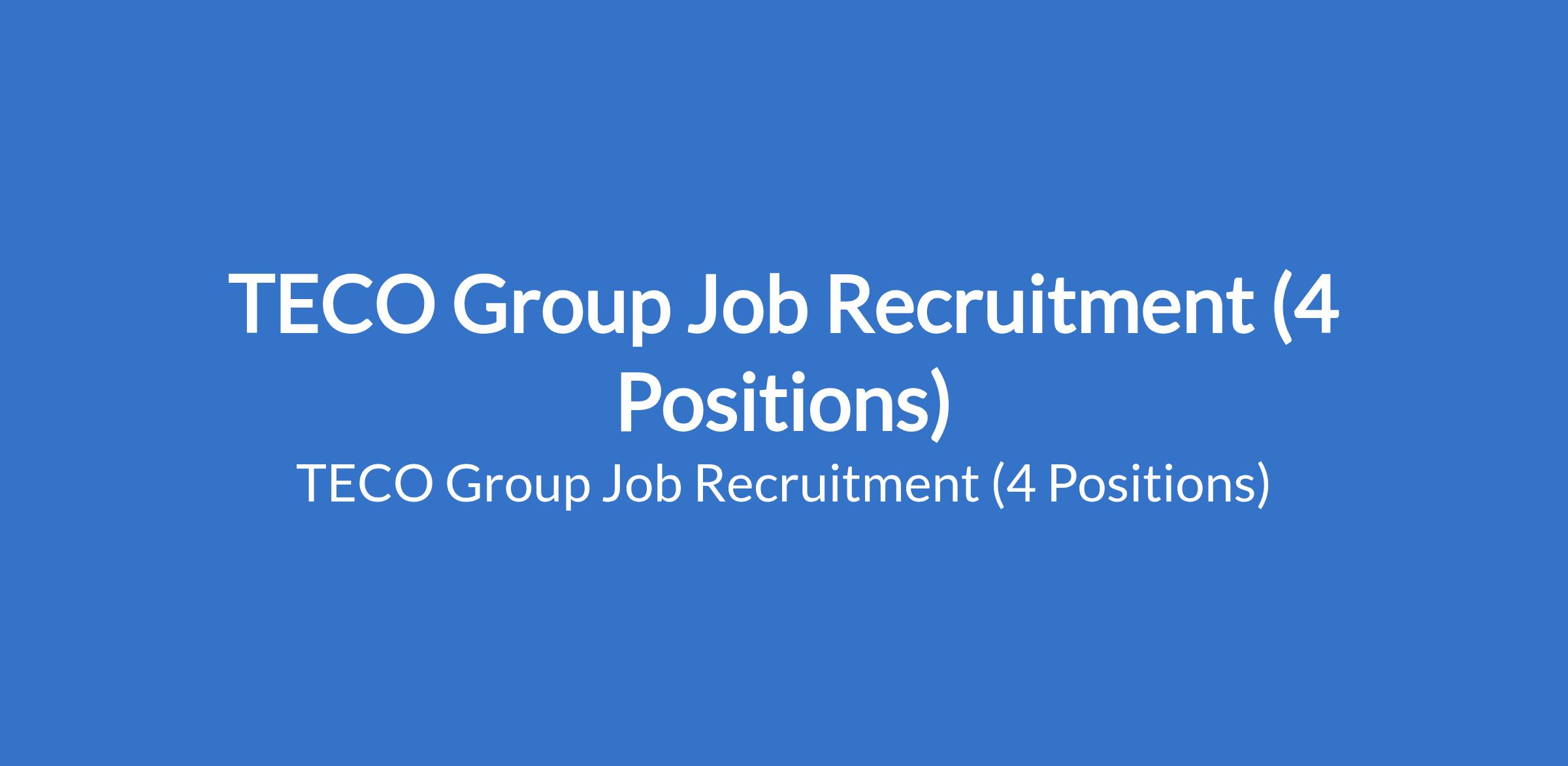 TECO Group Job Recruitment (4 Positions)