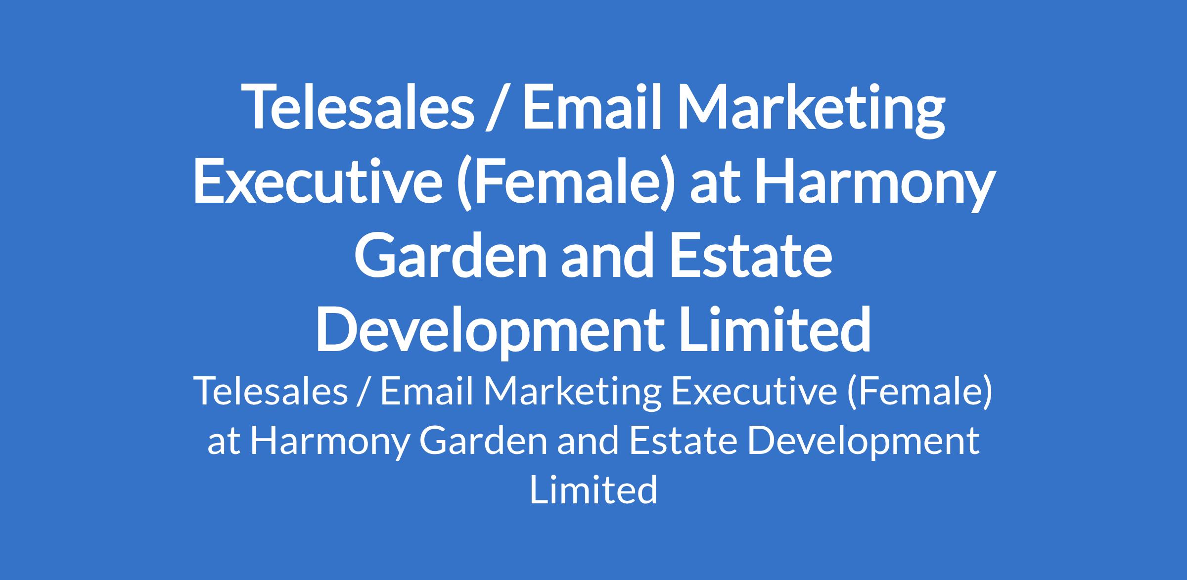 Harmony Garden and Estate Development Limited is recruiting to fill the position of: Telesales / Email Marketing Executive (Female). The position is located in Ibeju-Lekki, Lagos State. Salary: N250,000 N300,000 per month. Interested candidates should possess a relevant qualification with proven telesales/email marketing experience (real estate is a strong advantage).