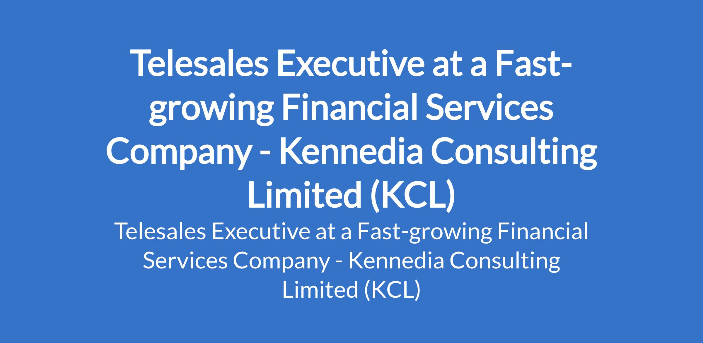Kennedia Consulting Limited (KCL) - Our client, a fast-growing financial services company is recruiting to fill the position of: Telesales Executive. The position is located in Ikeja, Lagos State. Salary: N80,000 monthly. The ideal candidate must be persuasive, target-oriented, and comfortable making high-volume calls daily. Interested candidates should possess minimum of an HND / B.Sc Degree and must have completed NYSC, with a minimum of 1 year experience in telesales or phone-based sales.
