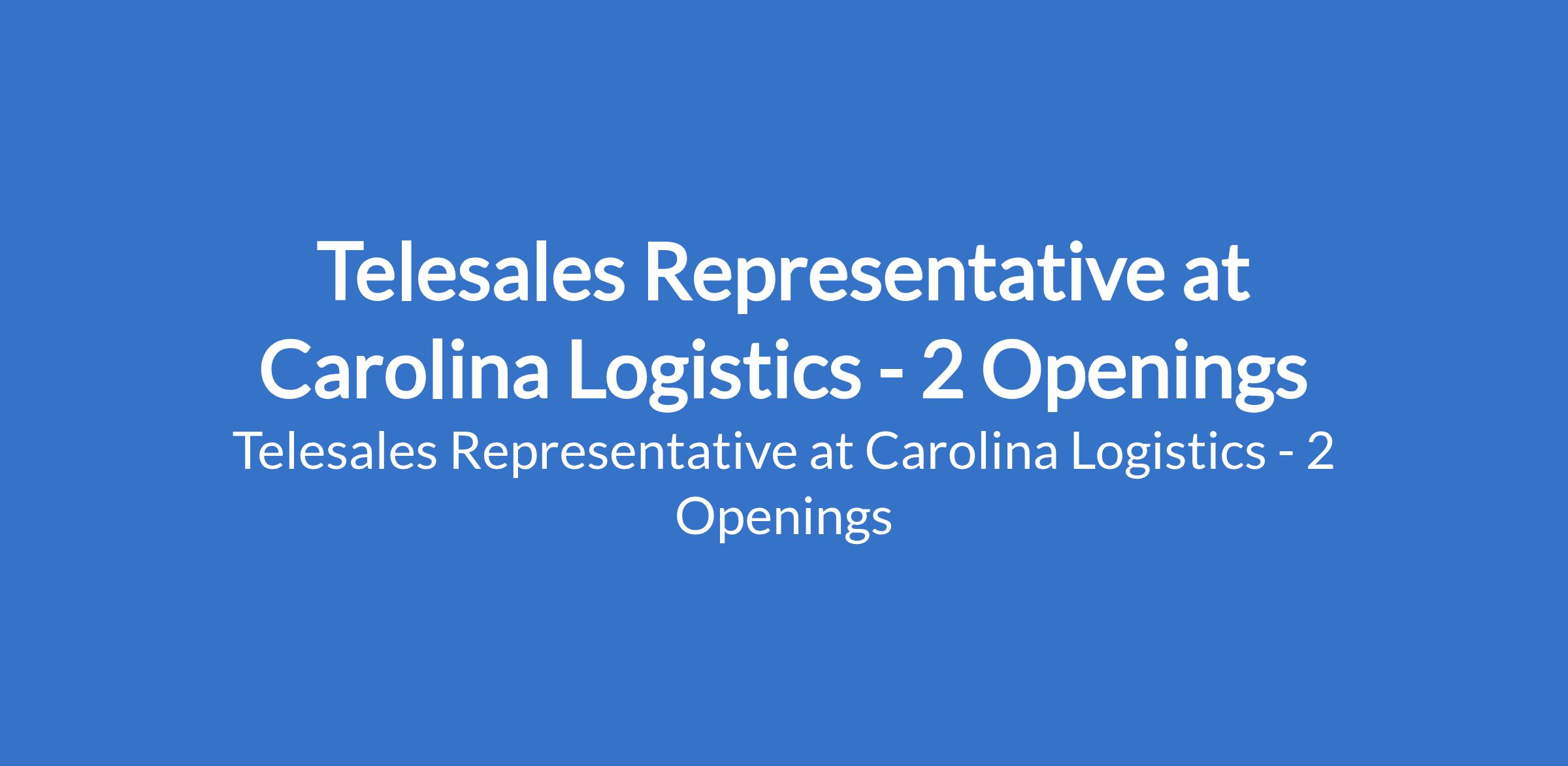Carolina Logistics is recruiting to fill the position of: Telesales Representative. The position is located in Abuja (FCT) and Victoria Island - Lagos State. Salary: N400,000 - N500,000 monthly. Interested candidates should possess a Bachelors Degree with a minimum of 2 years experience in sales.