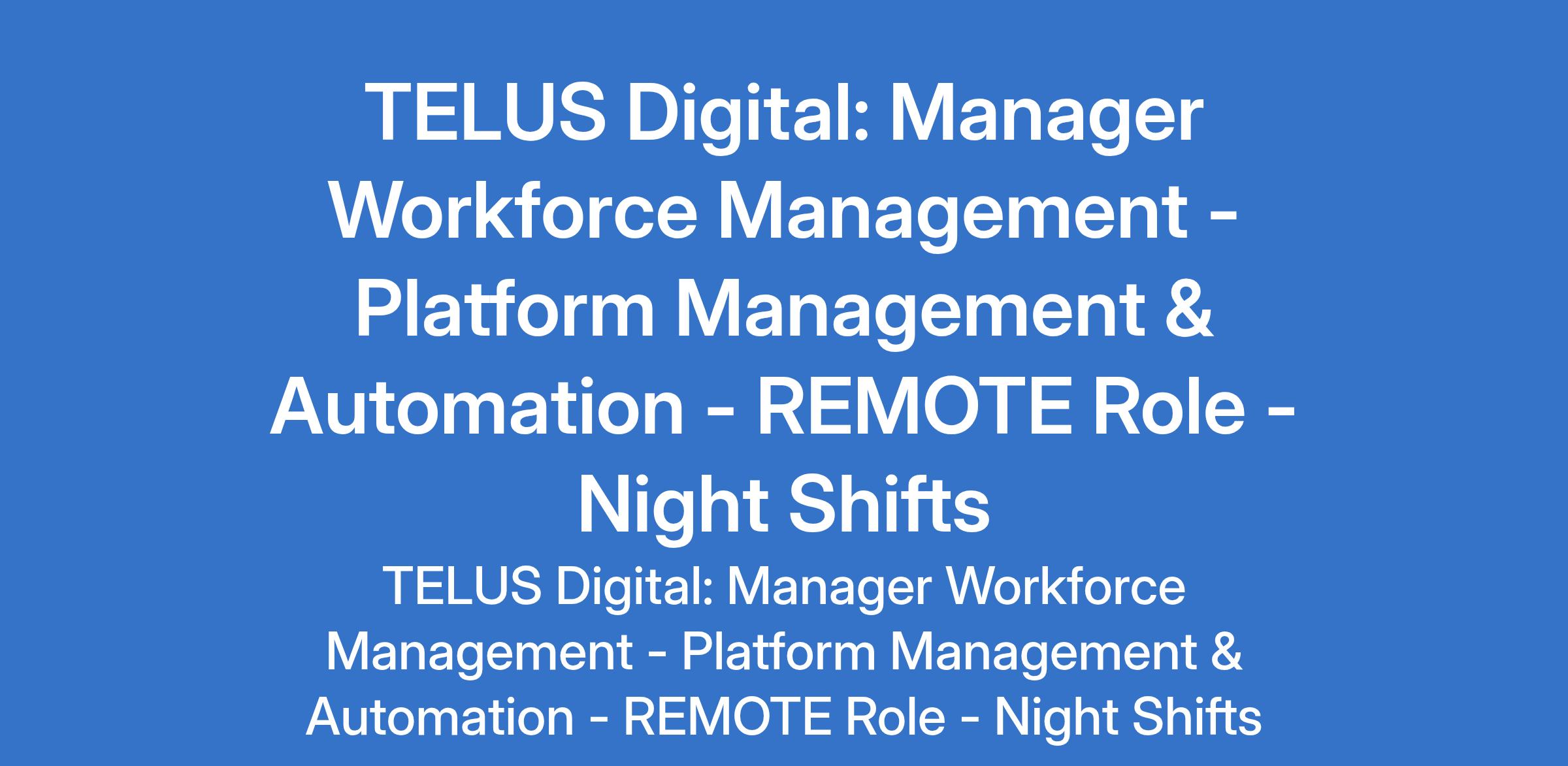 To apply: https://weworkremotely.com/remote-jobs/telus-digital-manager-workforce-management-platform-management-automation-remote-role-night