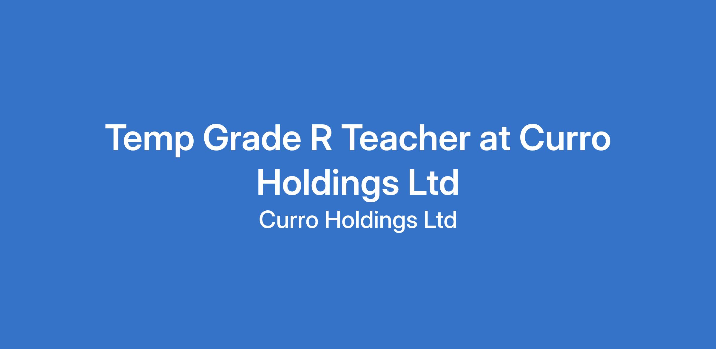 Temp Grade R Teacher at Curro Holdings Ltd