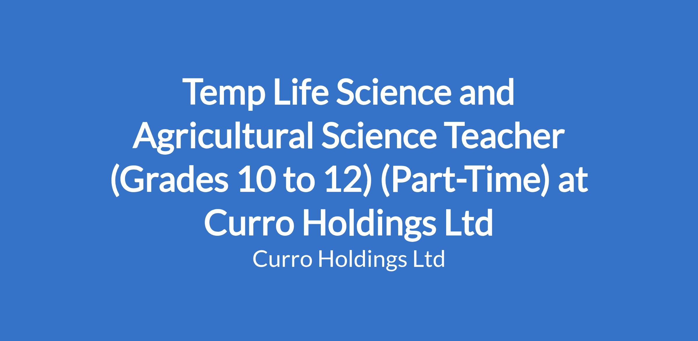 Temp Life Science and Agricultural Science Teacher (Grades 10 to 12) (Part-Time) at Curro Holdings Ltd