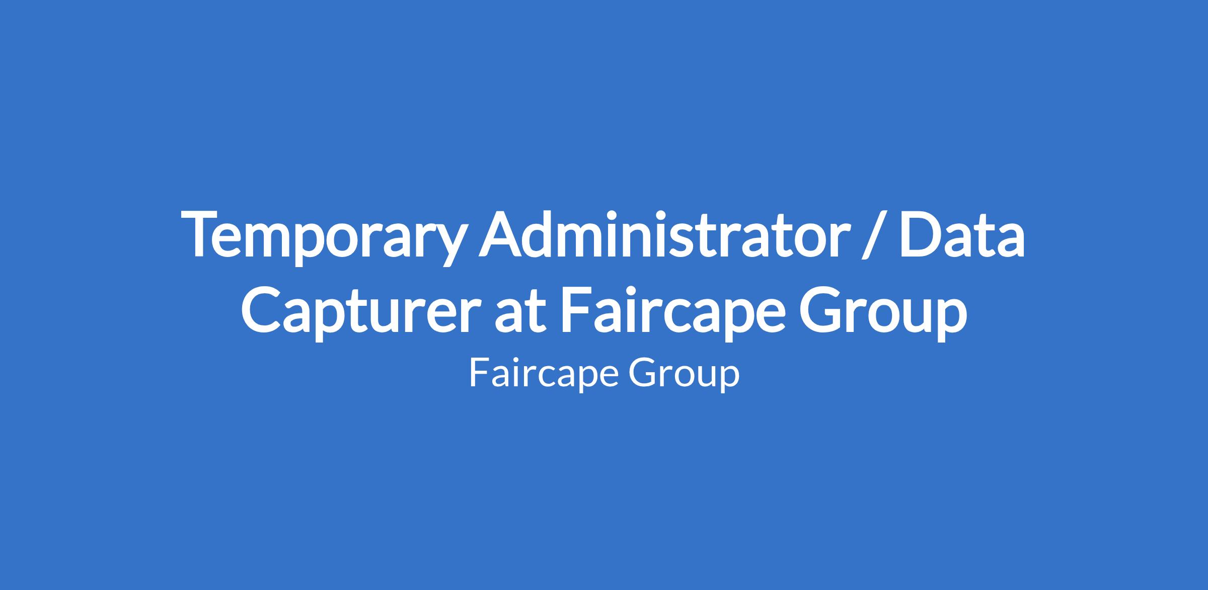 Temporary Administrator / Data Capturer at Faircape Group