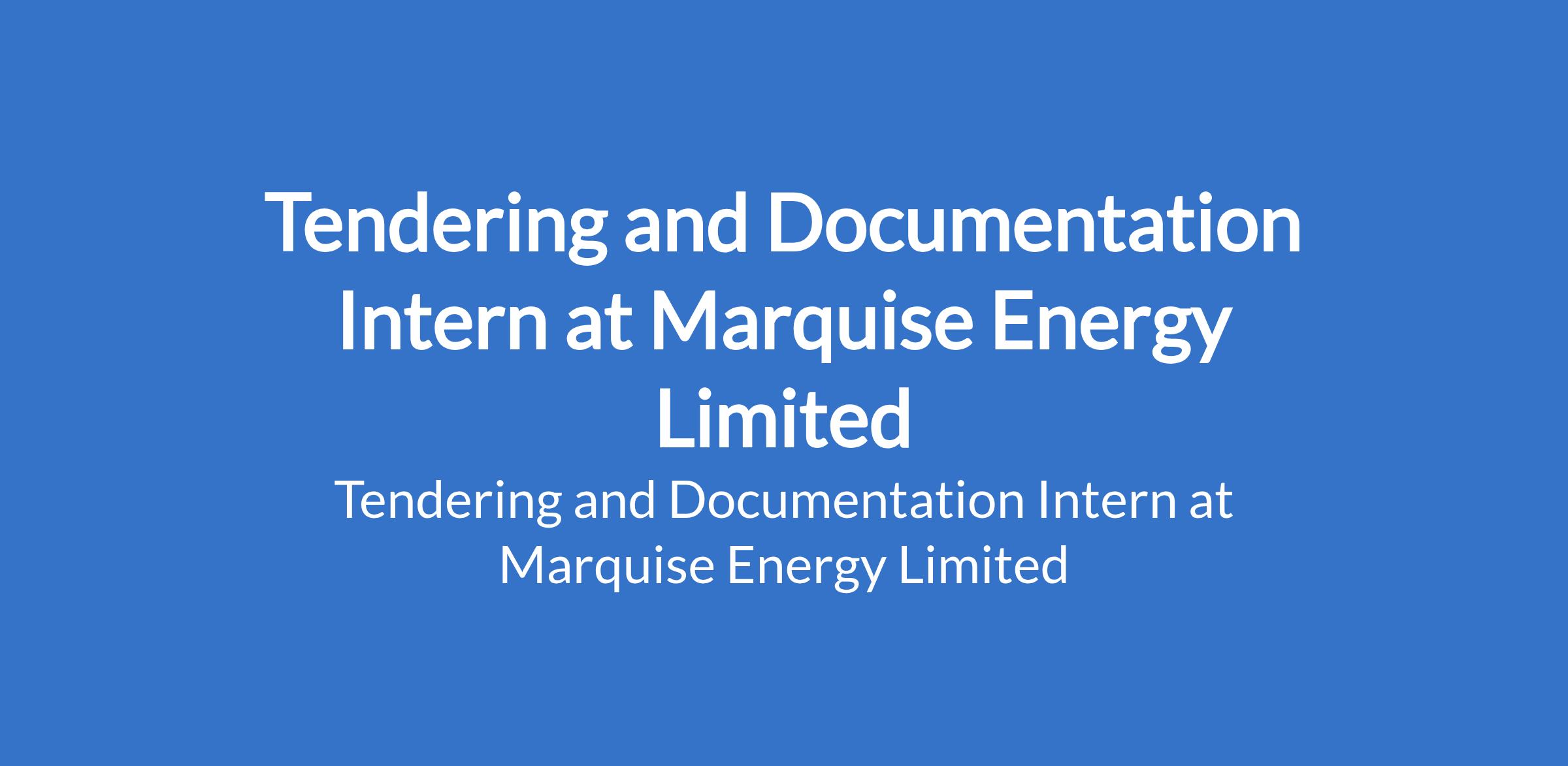 Tendering and Documentation Intern at Marquise Energy Limited