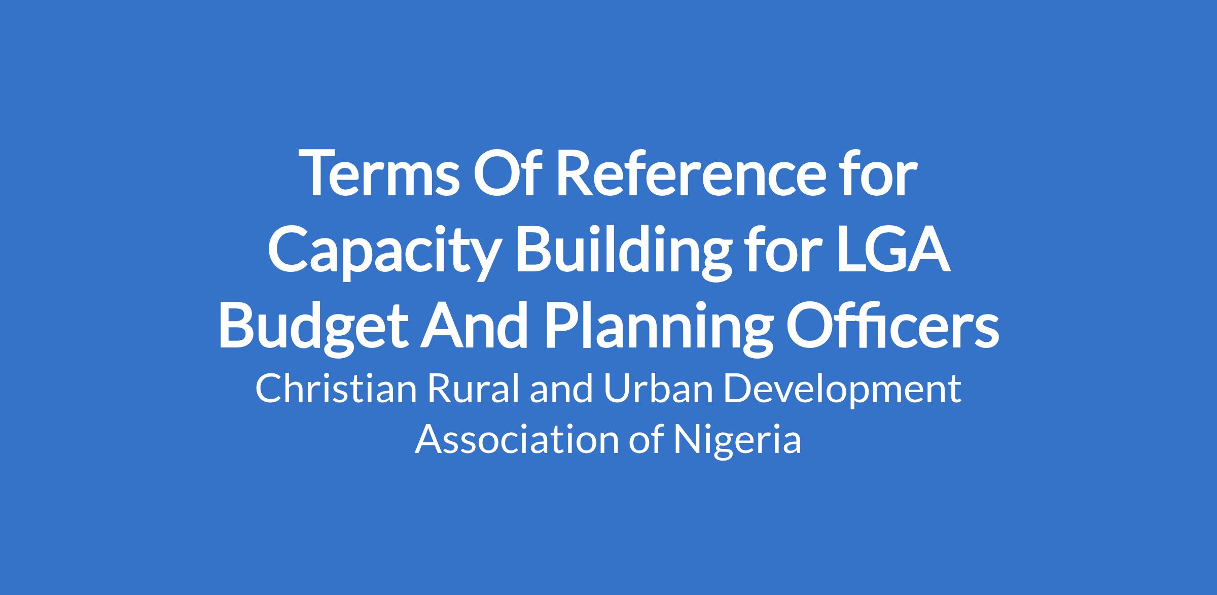Terms Of Reference for Capacity Building for LGA Budget And Planning Officers on National Charts of Accounts (Public Sector Accounting Frameworks (IPSAS)) For Improved Public Finance Management.