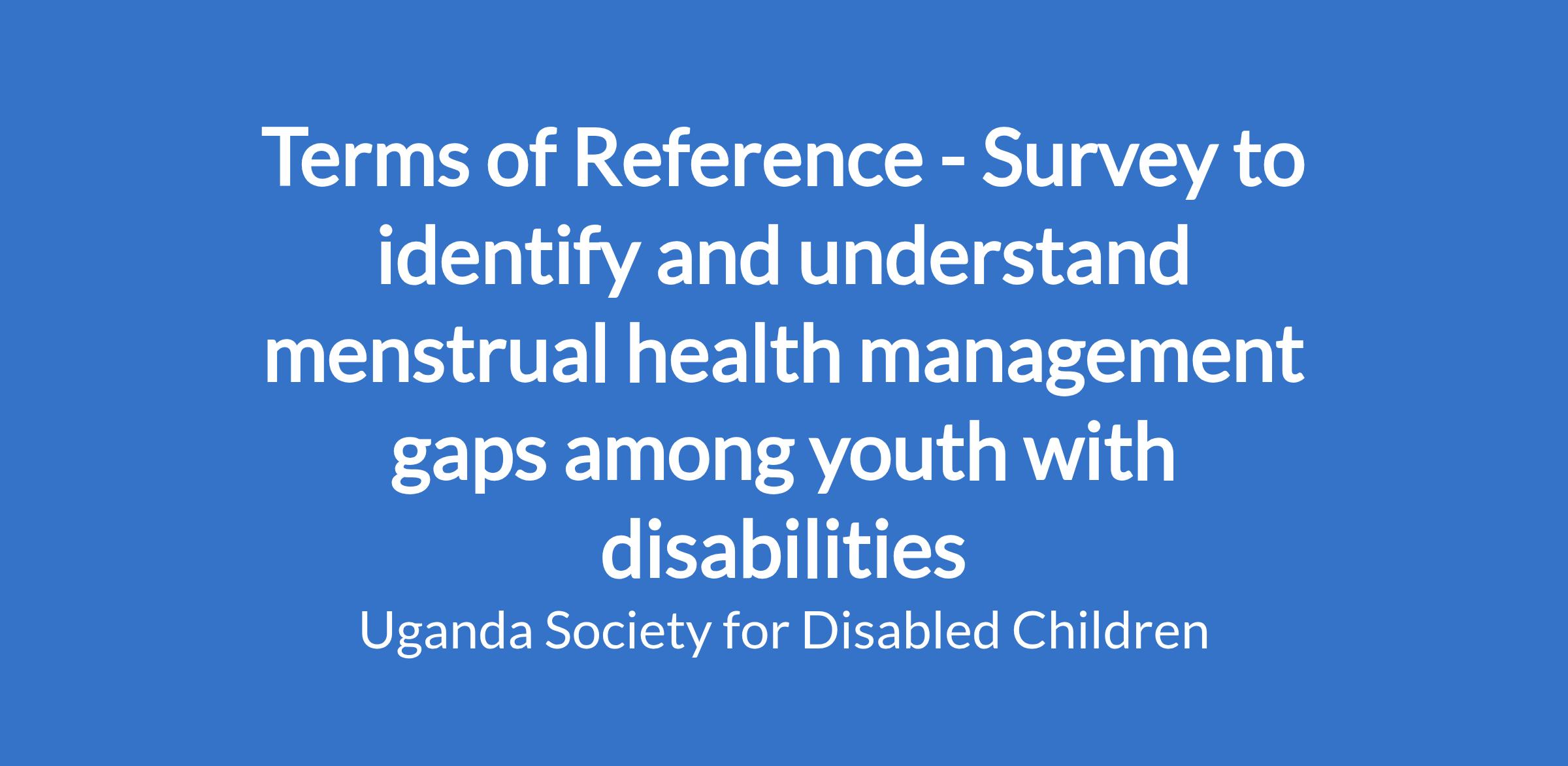 It is with this backdrop that the Able Child Africa Network through its network member the Uganda Society for Disabled Children (USDC) would like to commission a consultant to conduct a rapid assessment to identify and understand menstrual health management gaps among youth with disabilities. The survey will target 300 youth with disabilities across the network, however, the work with Uganda Society for Disabled Children (USDC) will target 100