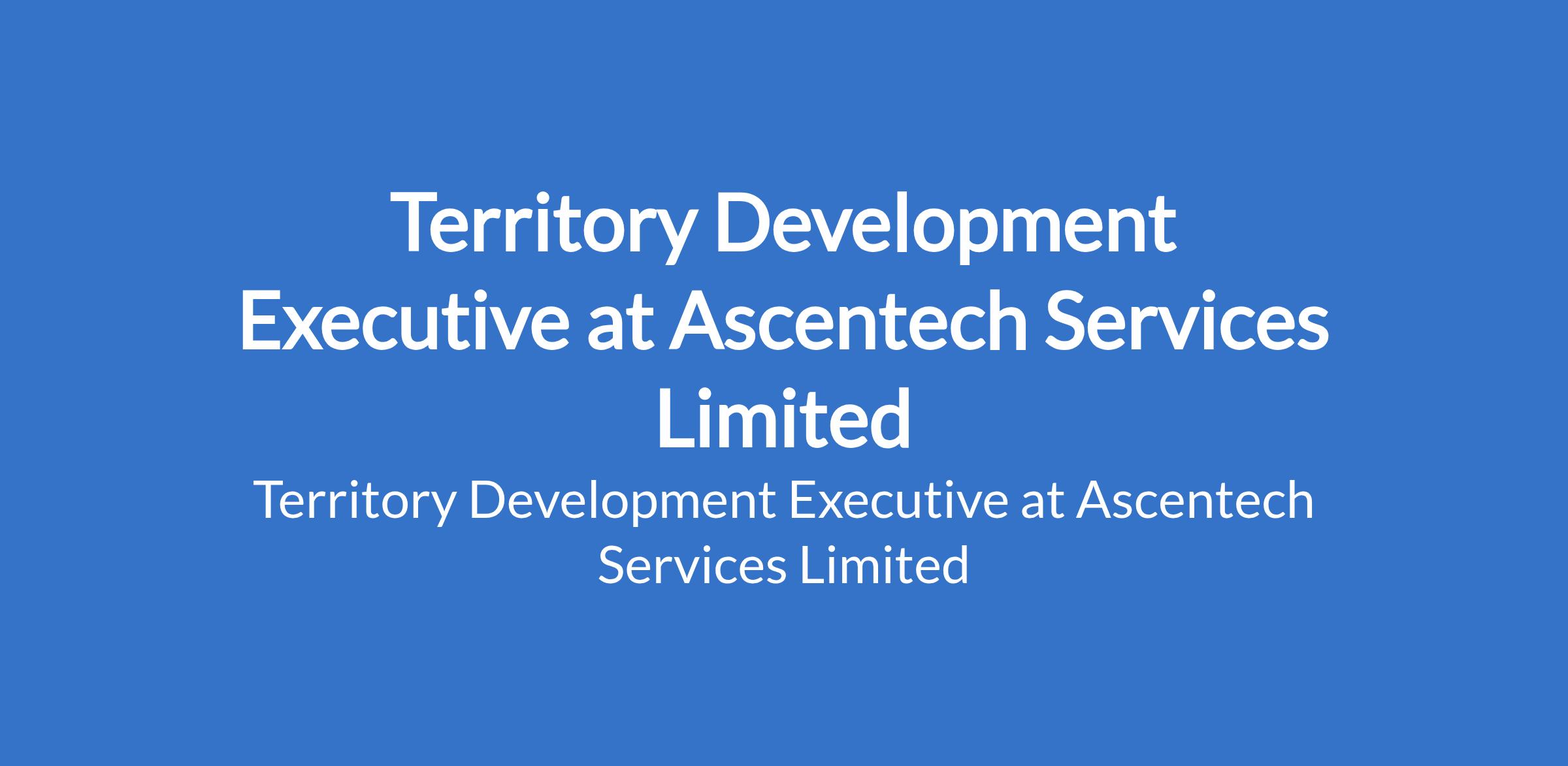 Ascentech Services Limited is recruiting to fill the position of: Territory Development Executive. The position is located in Minna, Niger State. Salary:N164,000 per month Net. Interested candidates should possess an HND or B.Sc Degree in a related field with 36 years of relevant experience in sales, preferably within FMCG or a related industry.
