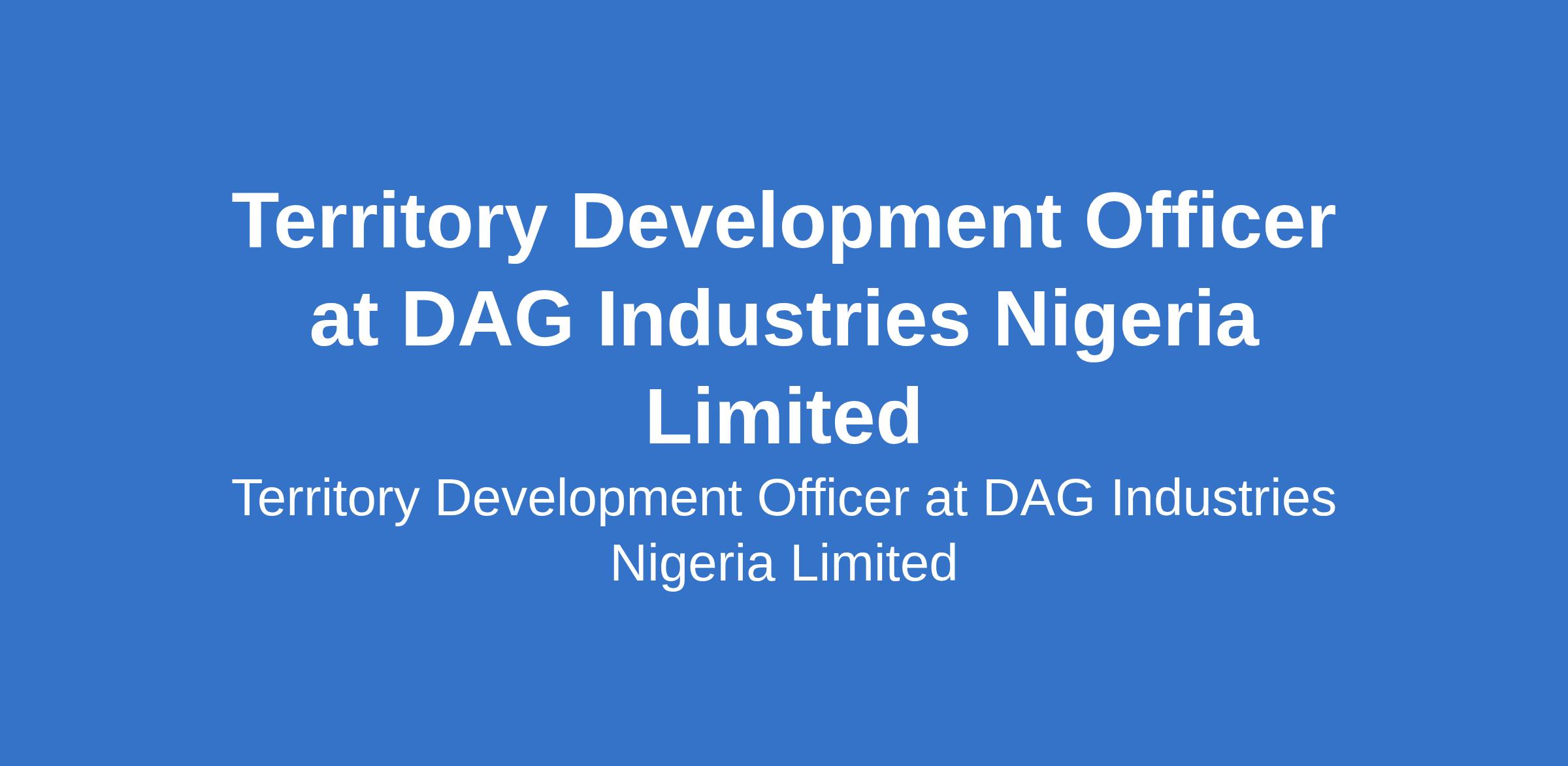 DAG Industries Nigeria Limited is recruiting to fill the position of: Territory Development Officer. The position is located in Ikeja, Lagos State. Interested candidates should possess a High School completion Certificate required; Diploma or Degree in Marketing, Business, Finance, or related field is an advantage with 2 5 years experience in field sales, business development, microfinance, asset finance, or related sectors.
