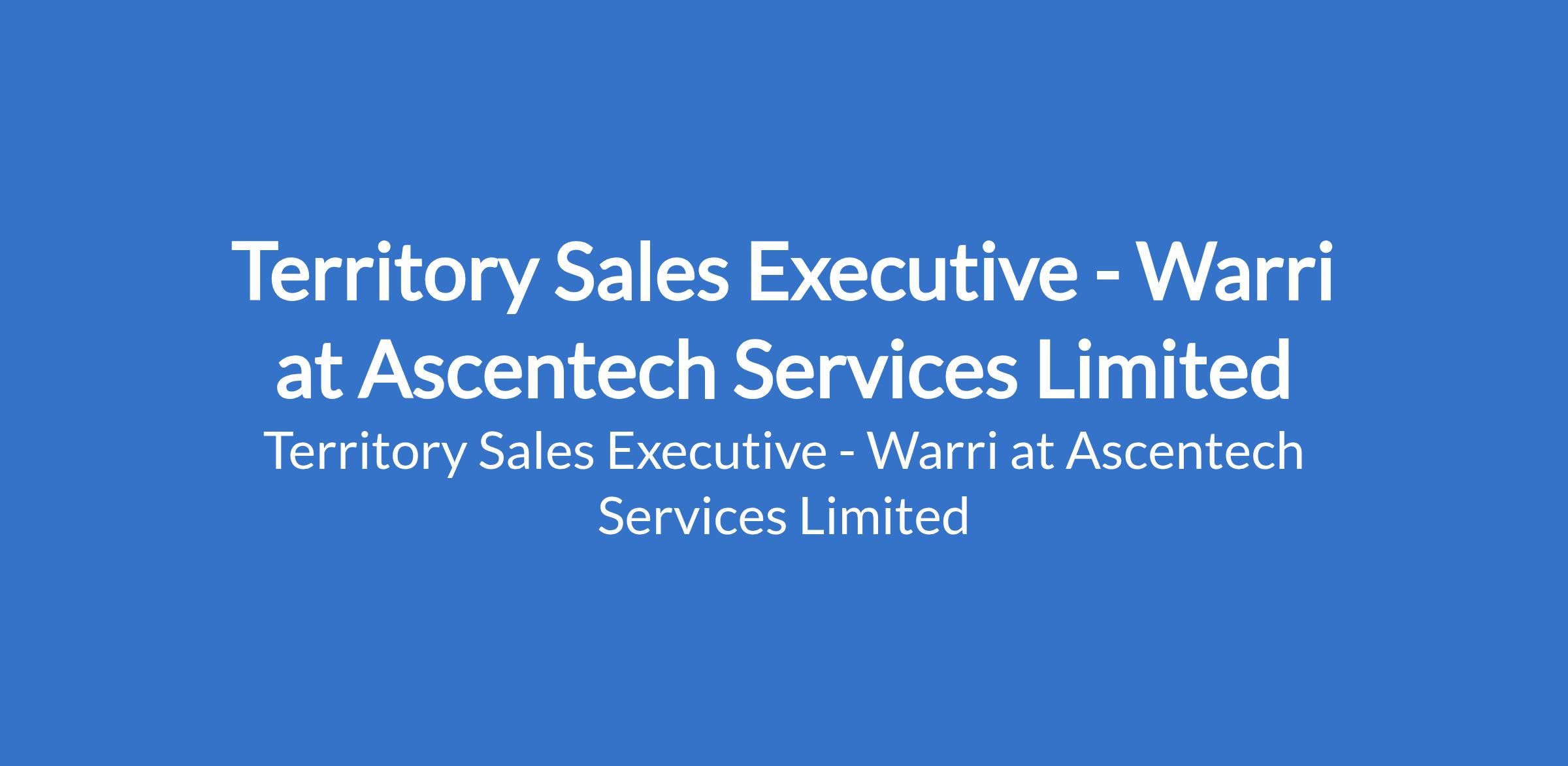 Ascentech Services Limited is recruiting to fill the position of: Territory Sales Executive. The position is located in Warri, Delta State. Salary: N150,000 - N180,000 per month. Interested candidates should possess a BSc / HND qualification with 2 3 years experience in B2B sales (FMCG experience is an added advantage).