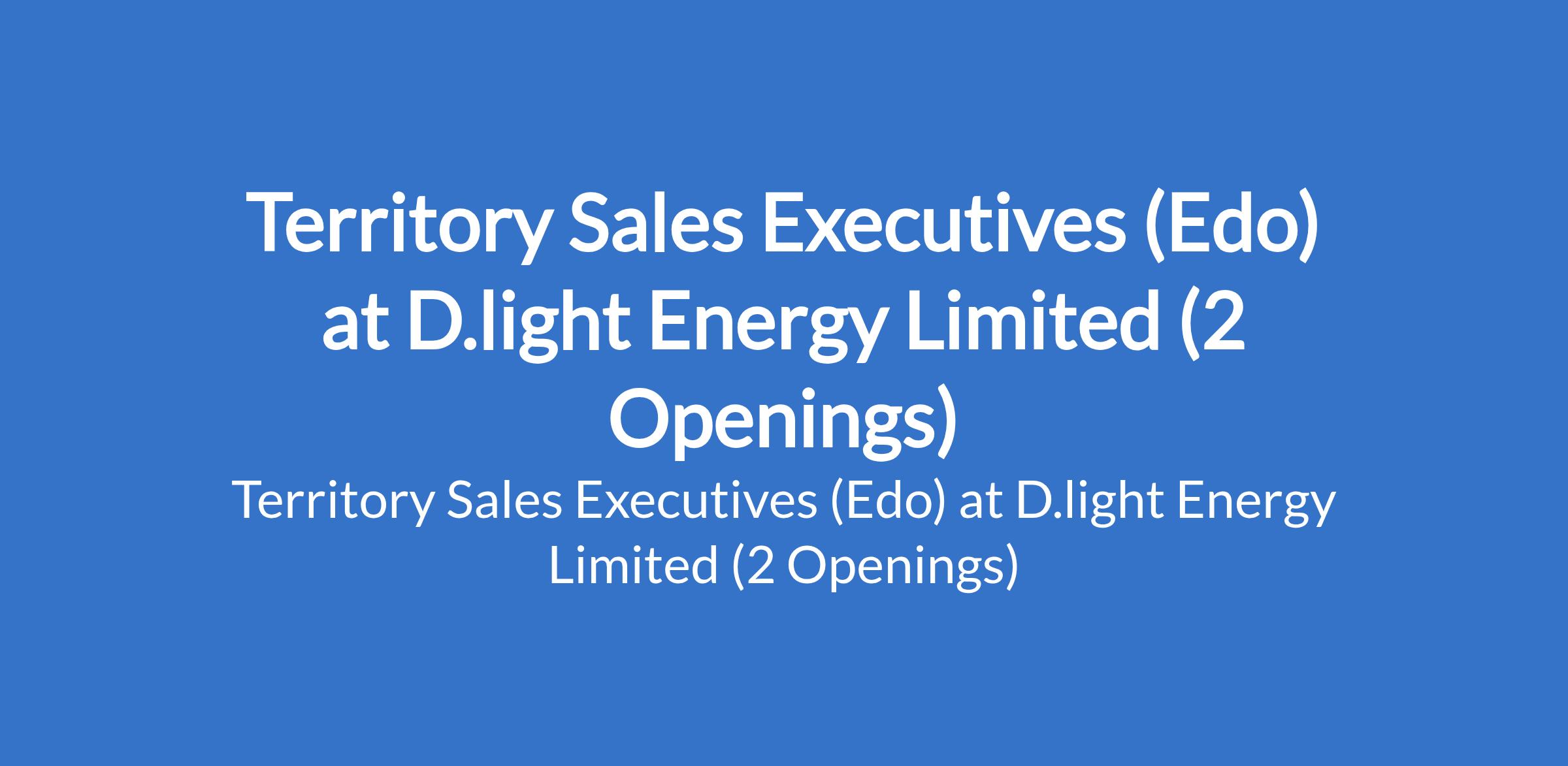 D.light Energy Limited is recruiting to fill the position of: Territory Sales Executive. The position is located in Oredo & Auchi/Ekpoma - Edo State. In this role, you will responsible for driving retail sales across the channel; Residence in area of coverage is an advantage.