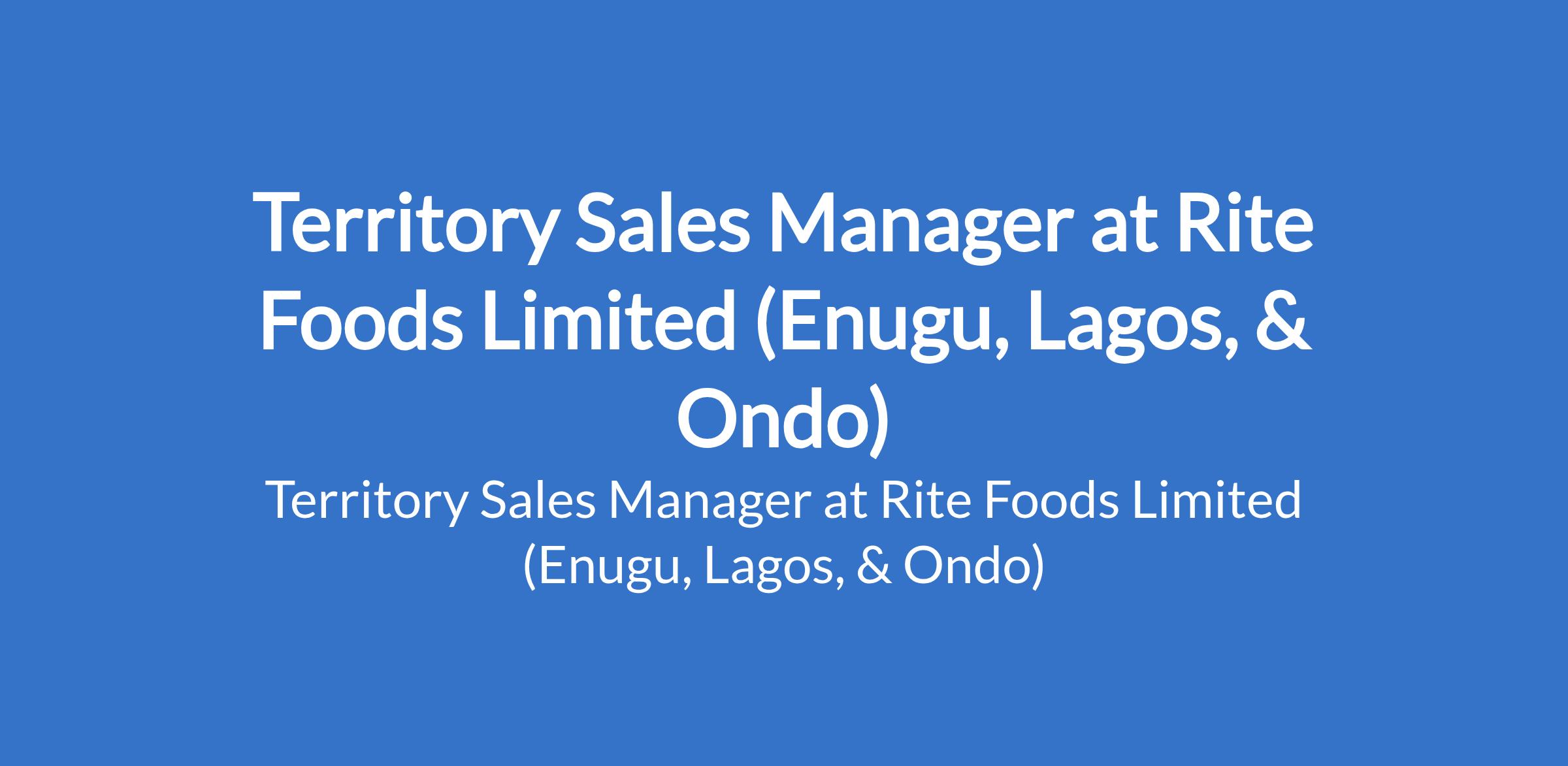 Rite Foods Limited is recruiting to fill the position of: Territory Sales Manager. The position is located in Enugu, Lagos, and Ondo States. Interested candidates should possess a First Degree or its equivalent in Business Administration, Marketing, Sales or other relevant discipline with a minimum of 3 years experience on similar role in a bakery FMCG environment.