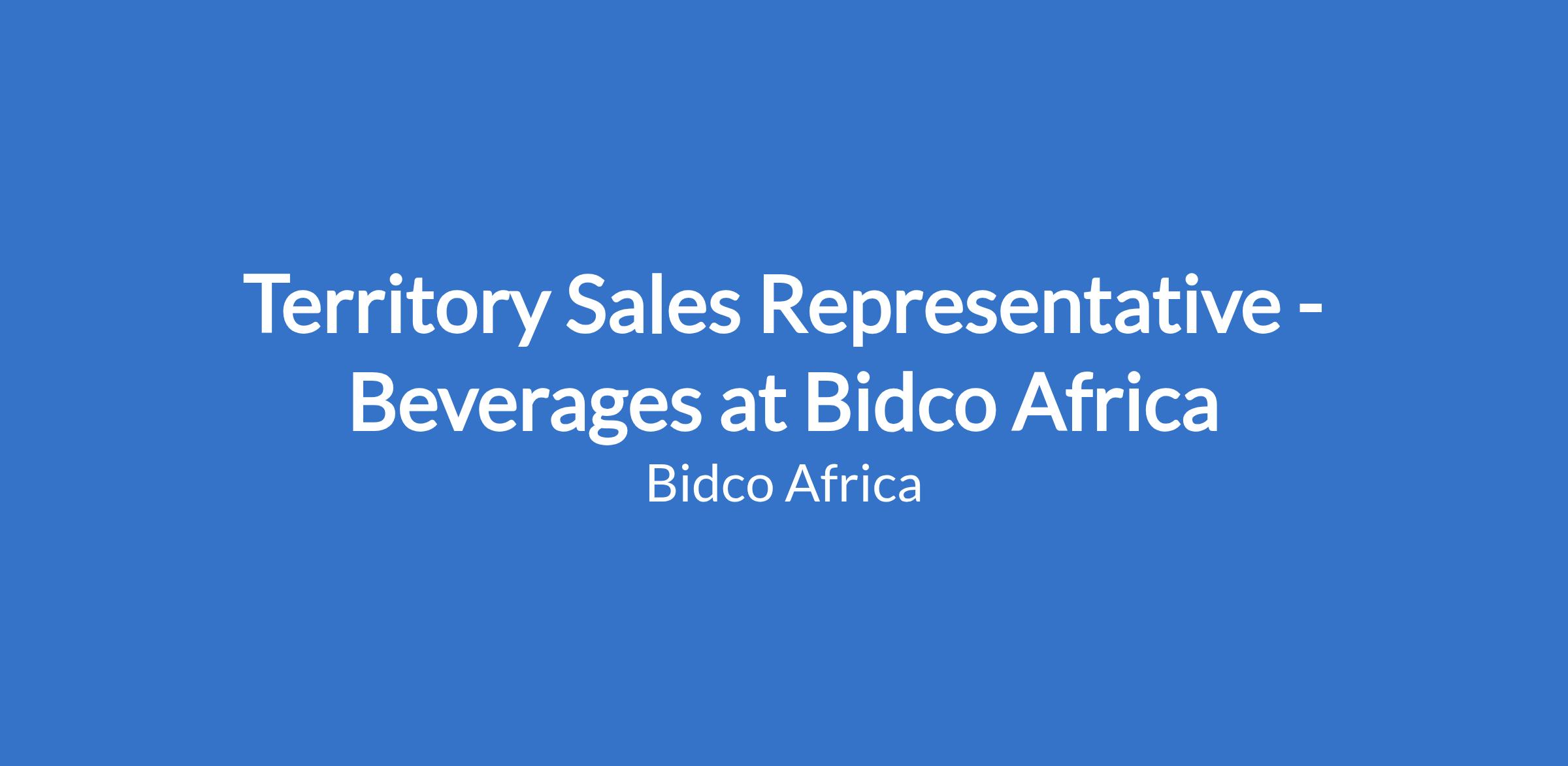 Territory Sales Representative - Beverages at Bidco Africa