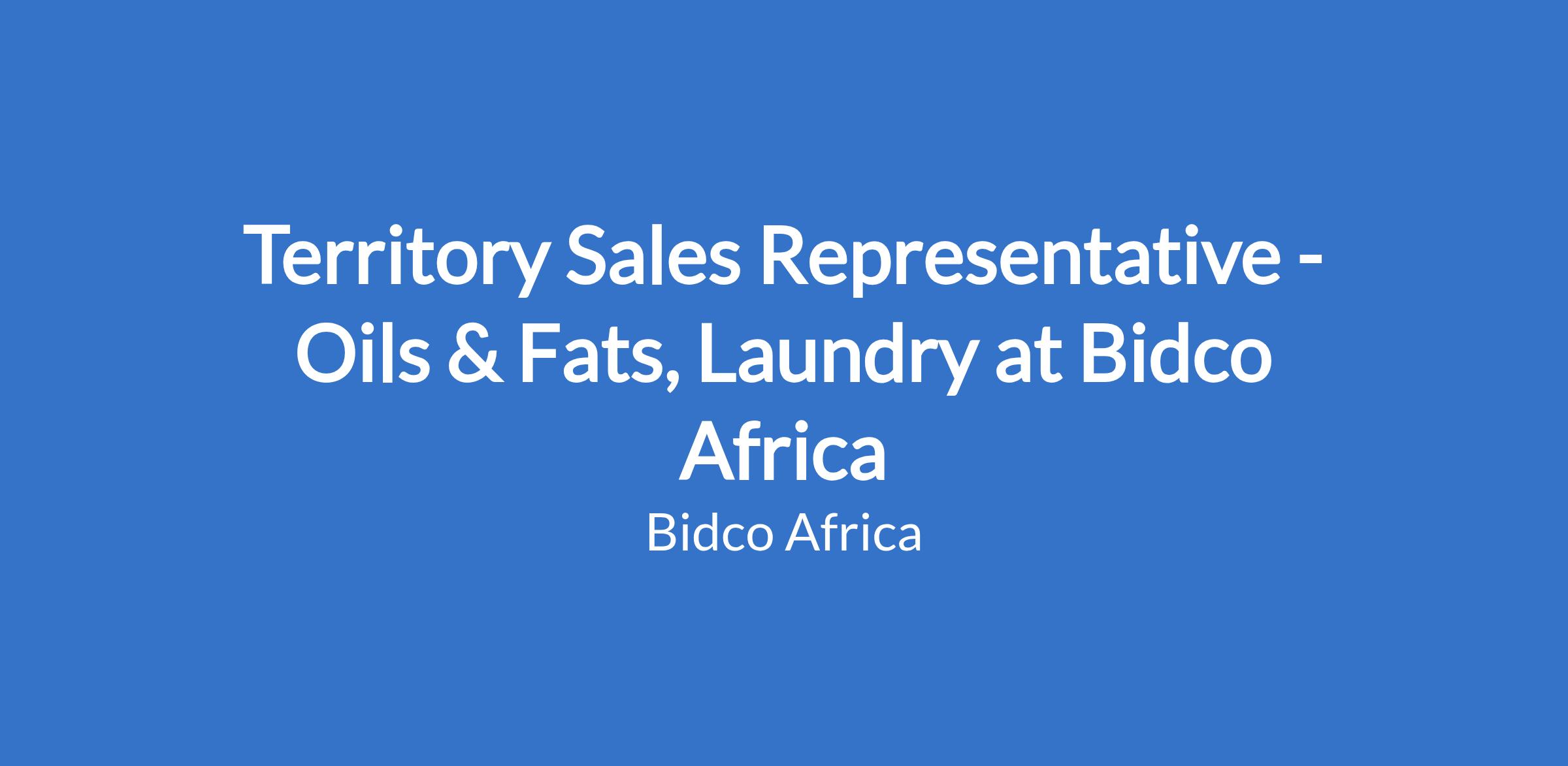 Territory Sales Representative - Oils & Fats, Laundry at Bidco Africa