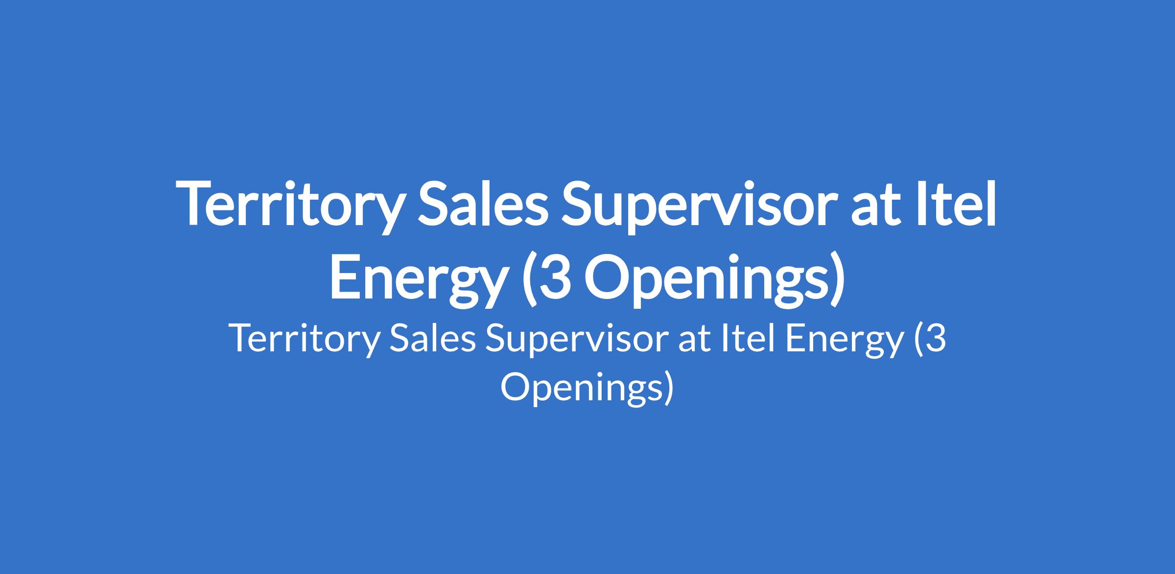 Itel Energy is recruiting to fill the position of: Territory Sales Supervisor. The position is located in Osun, Ekiti, and Kwara States. Interested candidates should possess a Bachelors Degree in Business, Marketing, or a related field with 46 years in sales (Solar, Electronics, FMCG, or Telecom), with 2+ years in a supervisory role.