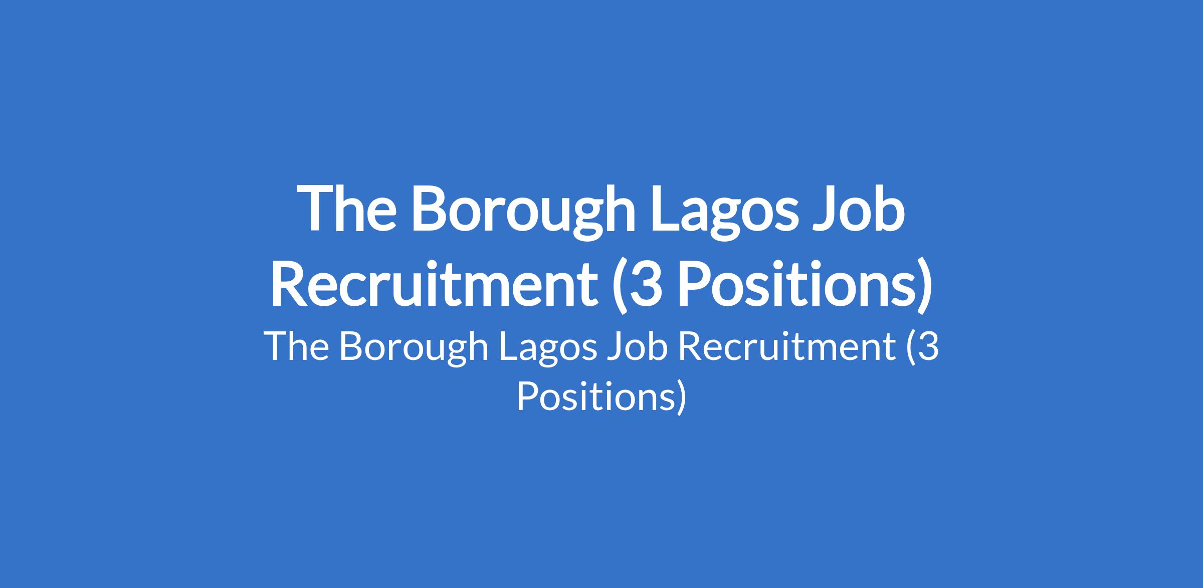 The Borough Lagos is recruiting suitable candidates to fill the following positions in Lagos State: Storekeeper, Experienced Barista, and Experienced Waitress.