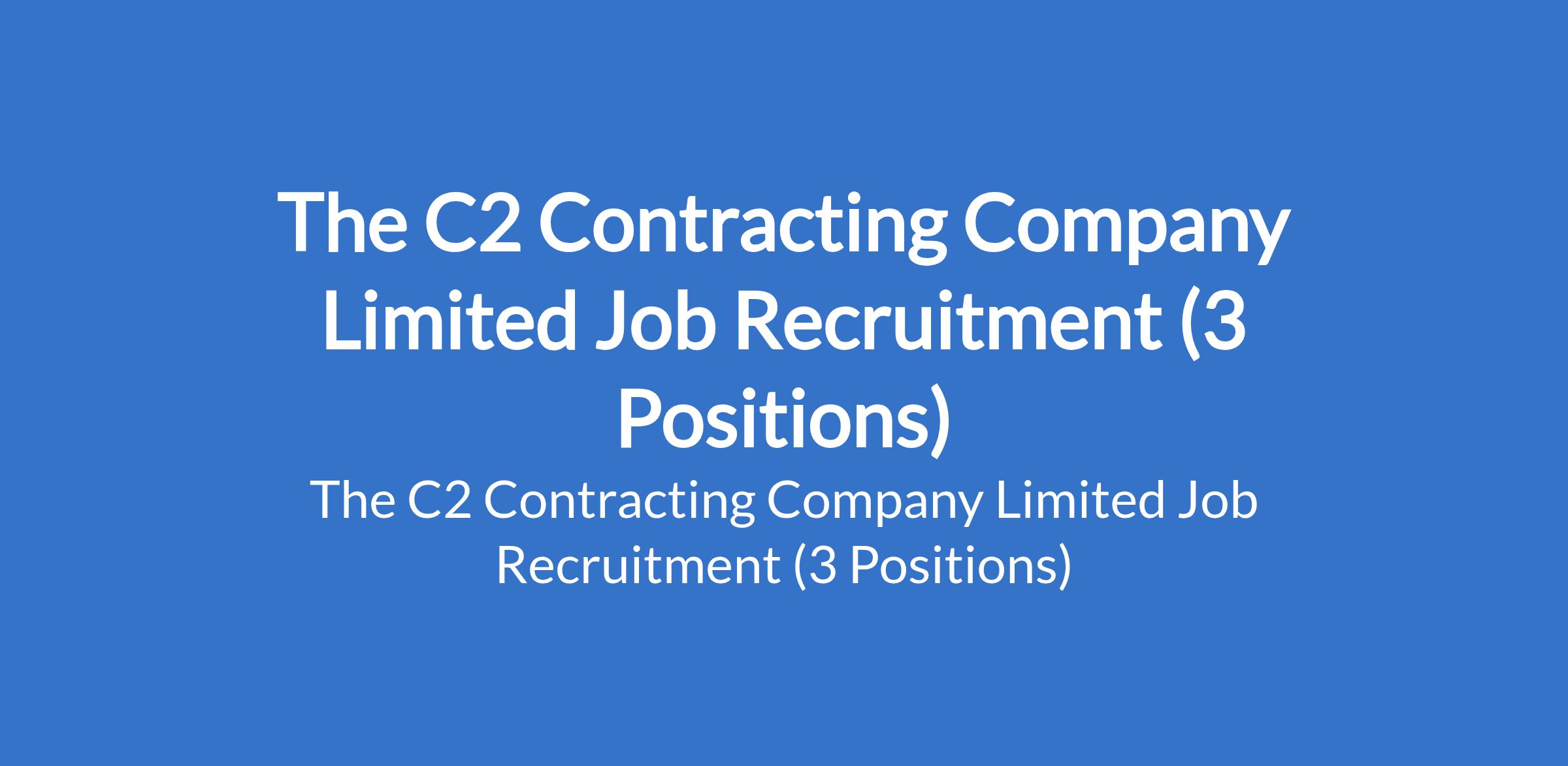 The C2 Contracting Company Limited is recruiting suitable candidates to fill the following positions in Abuja and Lagos State: Business Development Associate (Construction), UI/UX Designer (Mobile Apps & Digital Products), and Marketing and Business Development Coordinator.