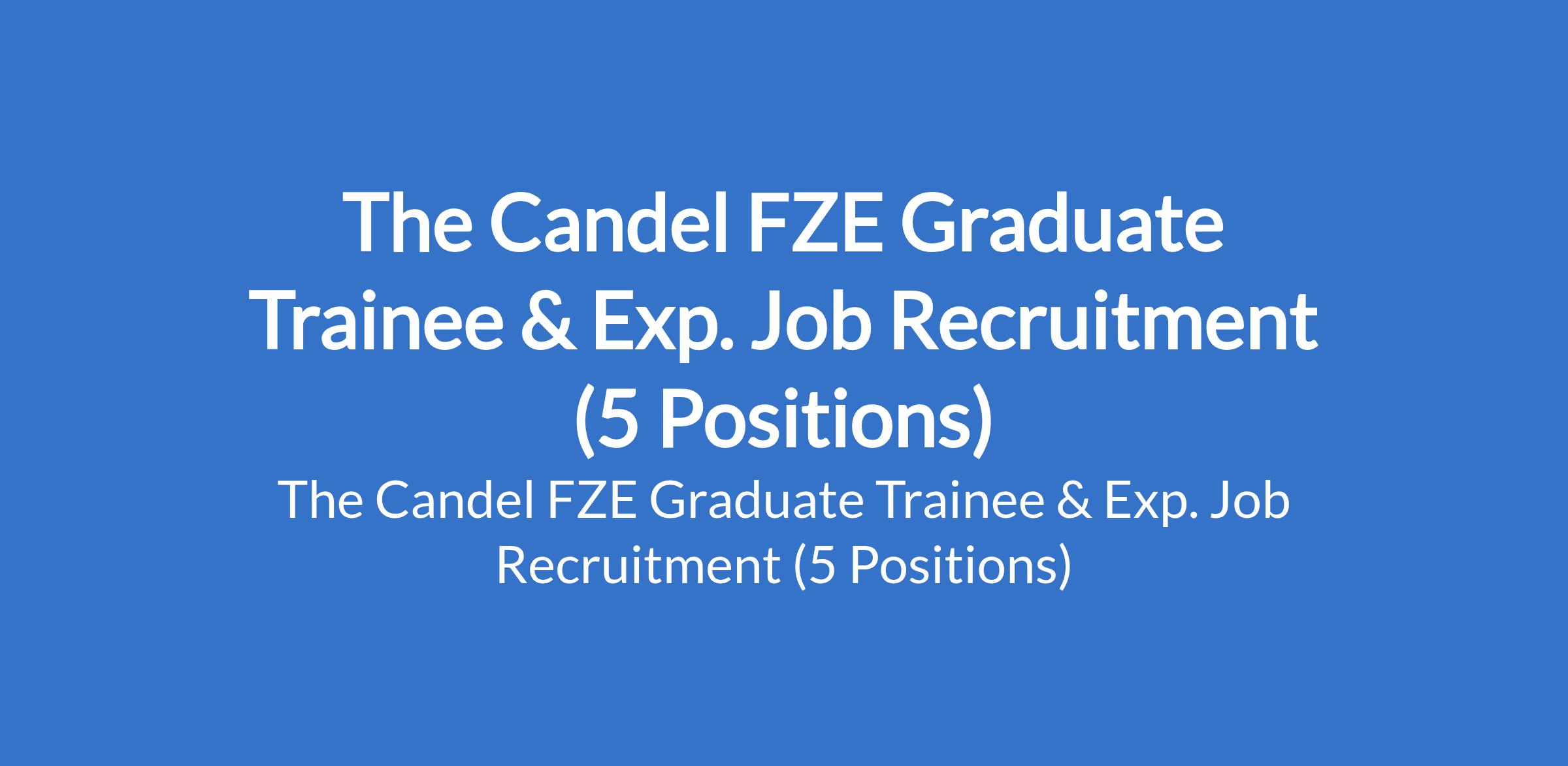 The Candel FZE is recruiting suitably qualified candidates to fill the following trainee and experienced positions in Lagos State: Graduate Trainee (Analytical Chemist), Forklift Operator, Truck Driver, Driver, and Graduate Trainee (Technical Sales Representative).