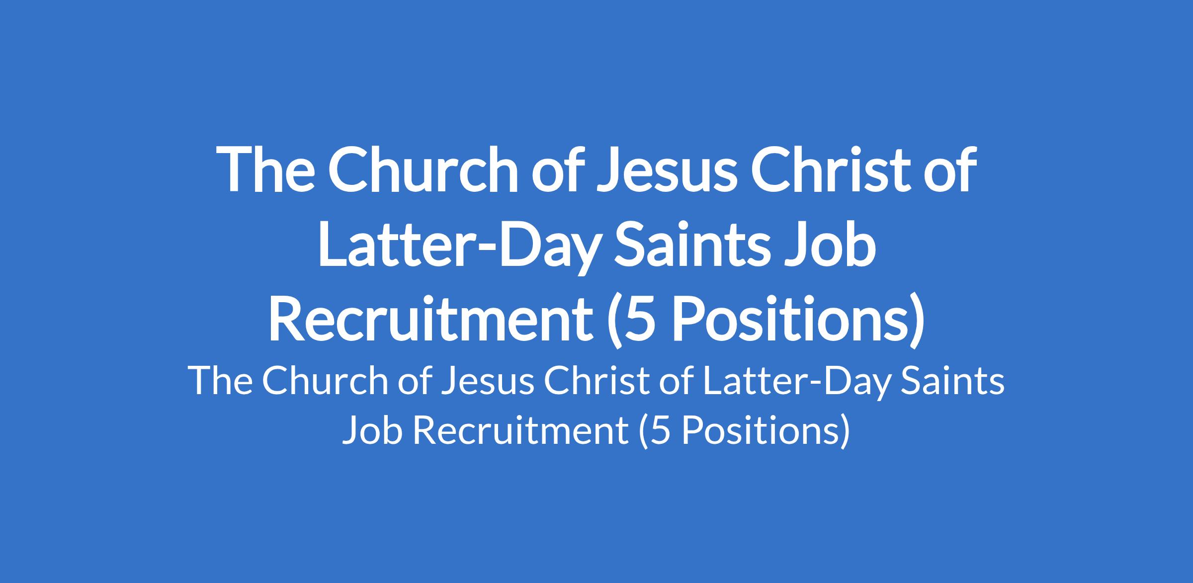 The Church of Jesus Christ of Latter-Day Saints Job Recruitment (5 Positions)